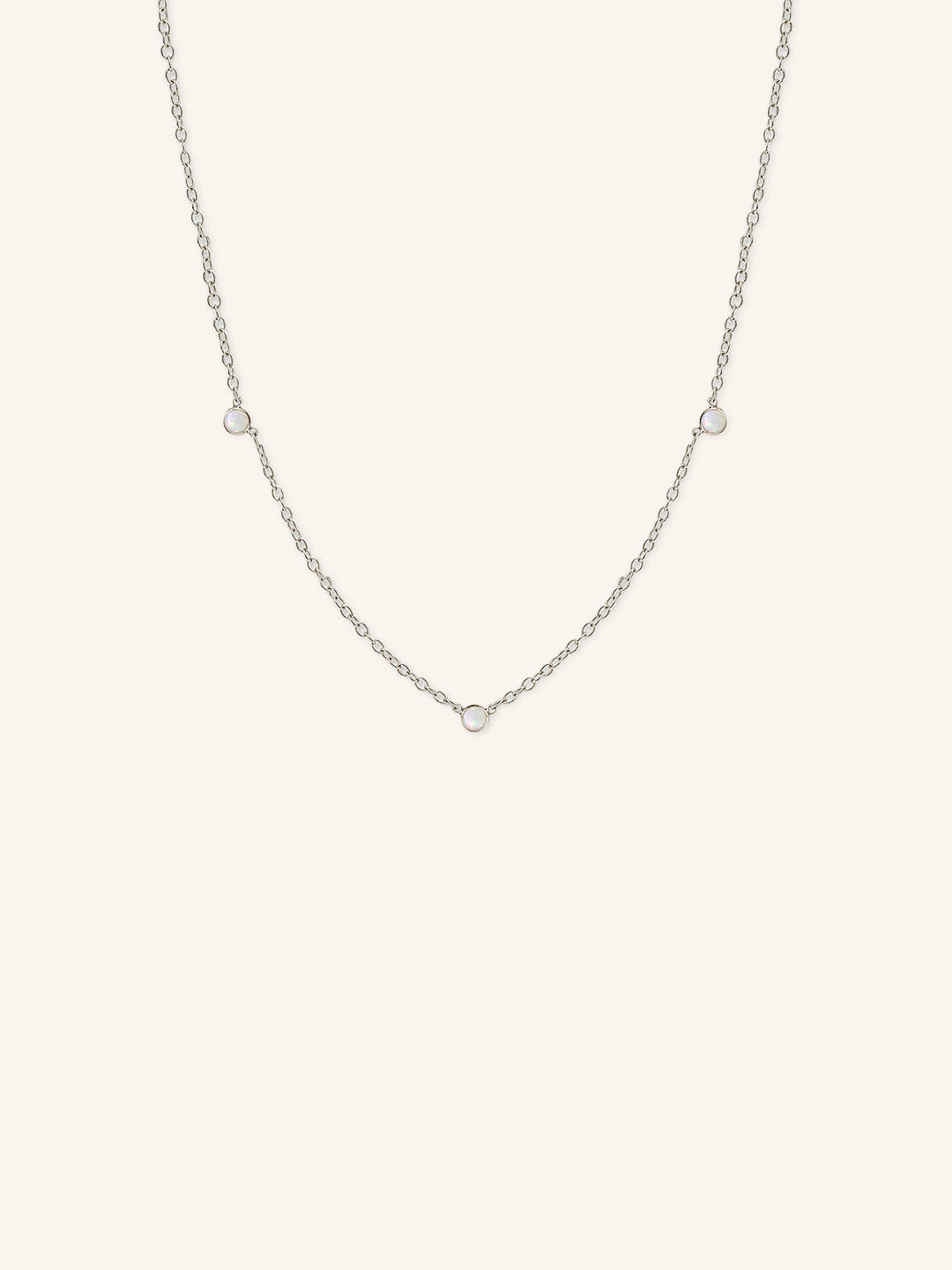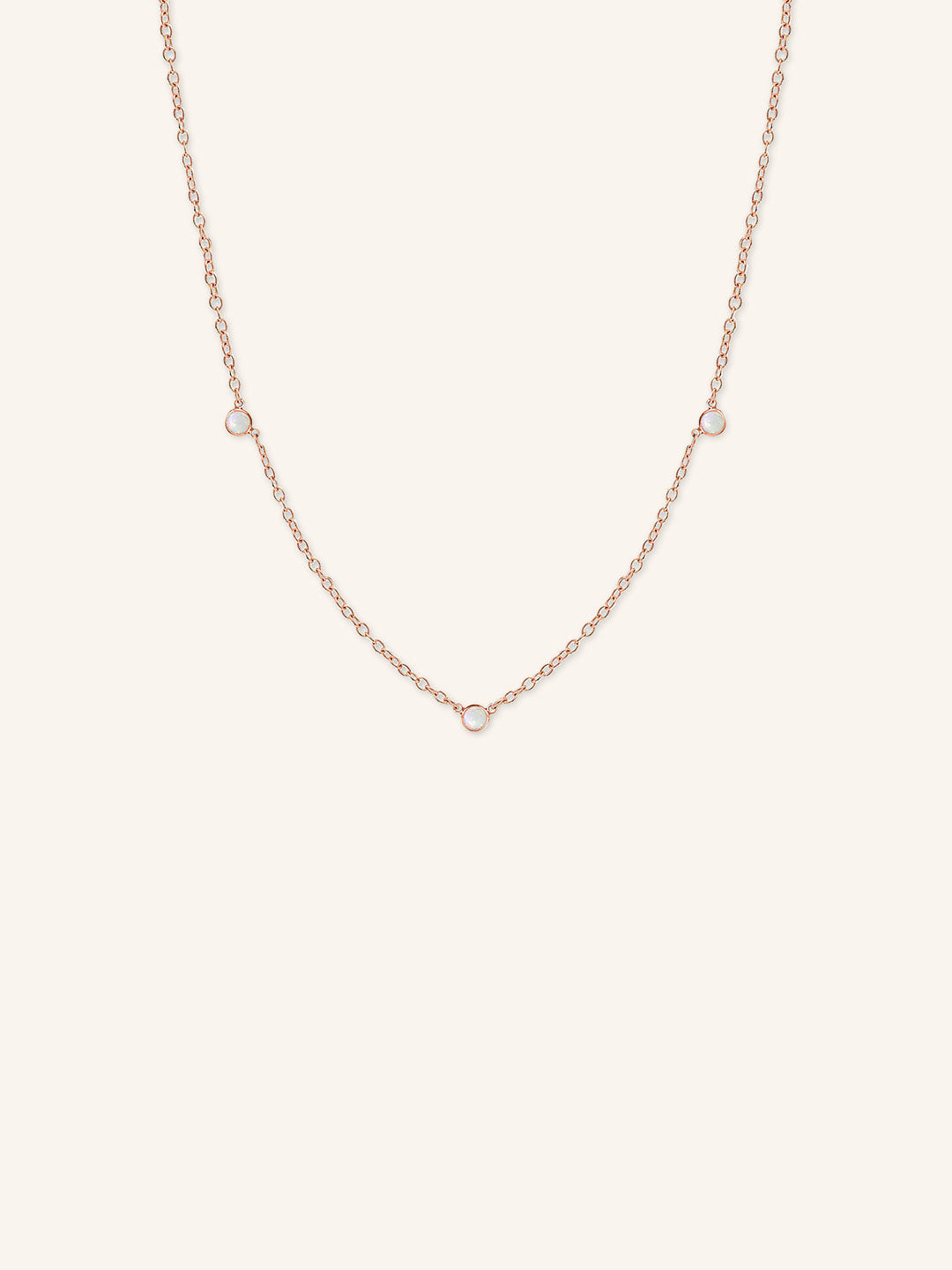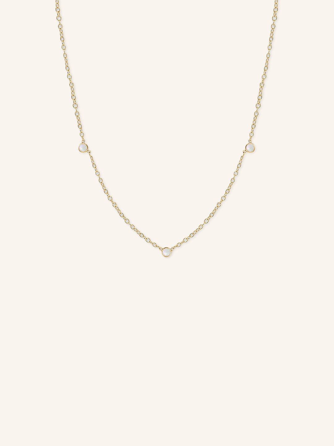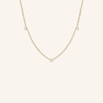 Solid 14k gold with three bezels laid on a single 1.30 mm cable chain with a choice of 16" or 18" length (available in yellow, white, or rose).