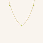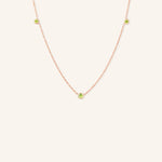 Solid 14k gold with three bezels laid on a single 1.30 mm cable chain with a choice of 16" or 18" length (available in yellow, white, or rose).