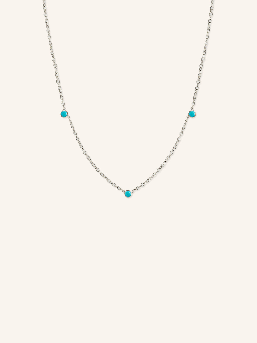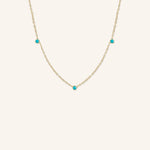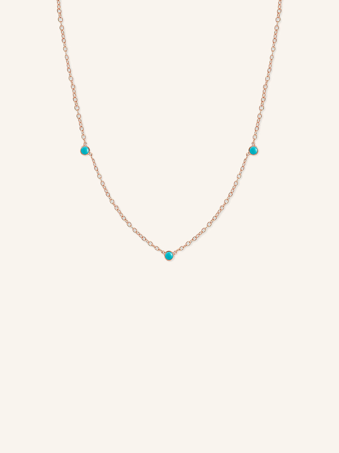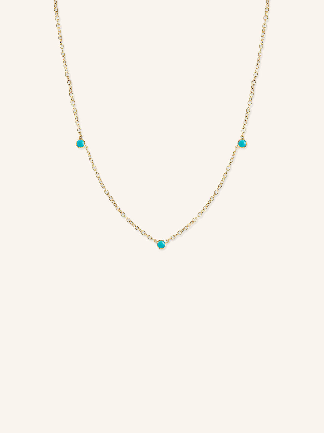 Solid 14k gold with three bezels laid on a single 1.30 mm cable chain with a choice of 16" or 18" length (available in yellow, white, or rose).