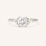A luminous center diamond is flanked by three sparkling accents on each side, creating a balanced silhouette with timeless elegance and subtle radiance. This design draws the eye to the center while adding just the right amount of brilliance. A perfect choice for someone who wants a ring that feels both classic and meaningful, it symbolizes love that shines from every angle.