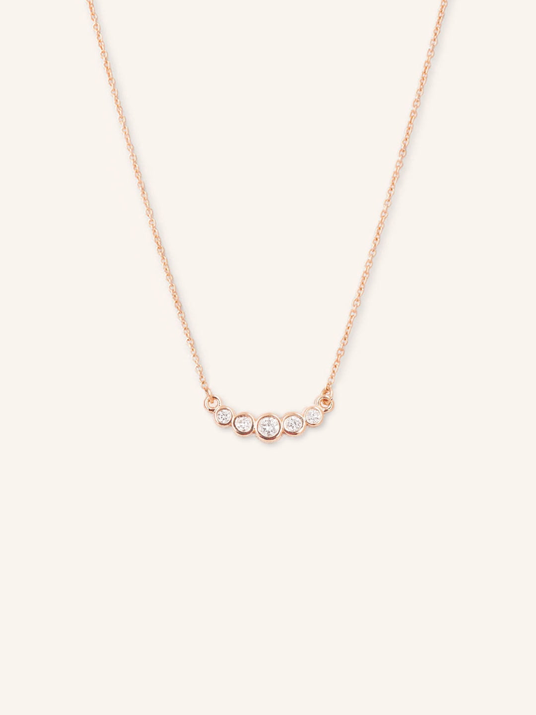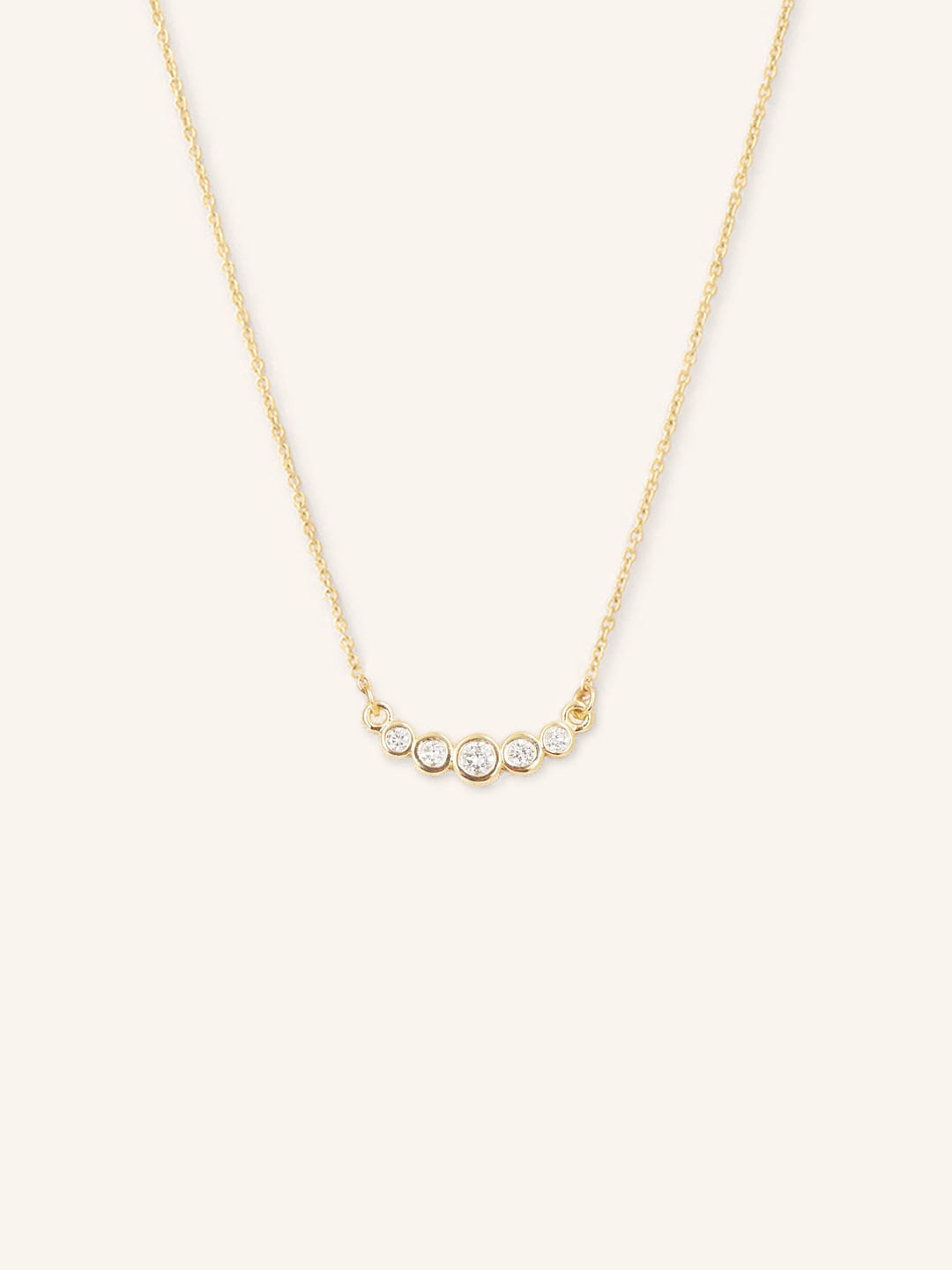 Pairing together five peas in a pod, this necklace is one of a kind. Created with 5 diamonds bezel set in 14k solid gold, this necklace embodies sophistication at its best.