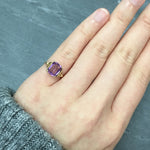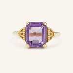 Crafted with care, this ring features a high-quality amethyst gemstone set in a meticulously designed band. The intricate details of the band, reminiscent of vintage jewelry, add a touch of timeless elegance to this piece. With its vintage-inspired design, exceptional craftsmanship, and stunning amethyst gemstone, this ring is truly a treasure to behold. Elevate your style with a touch of nostalgia and sophistication by owning this exquisite vintage-style amethyst gemstone ring.