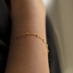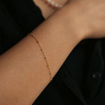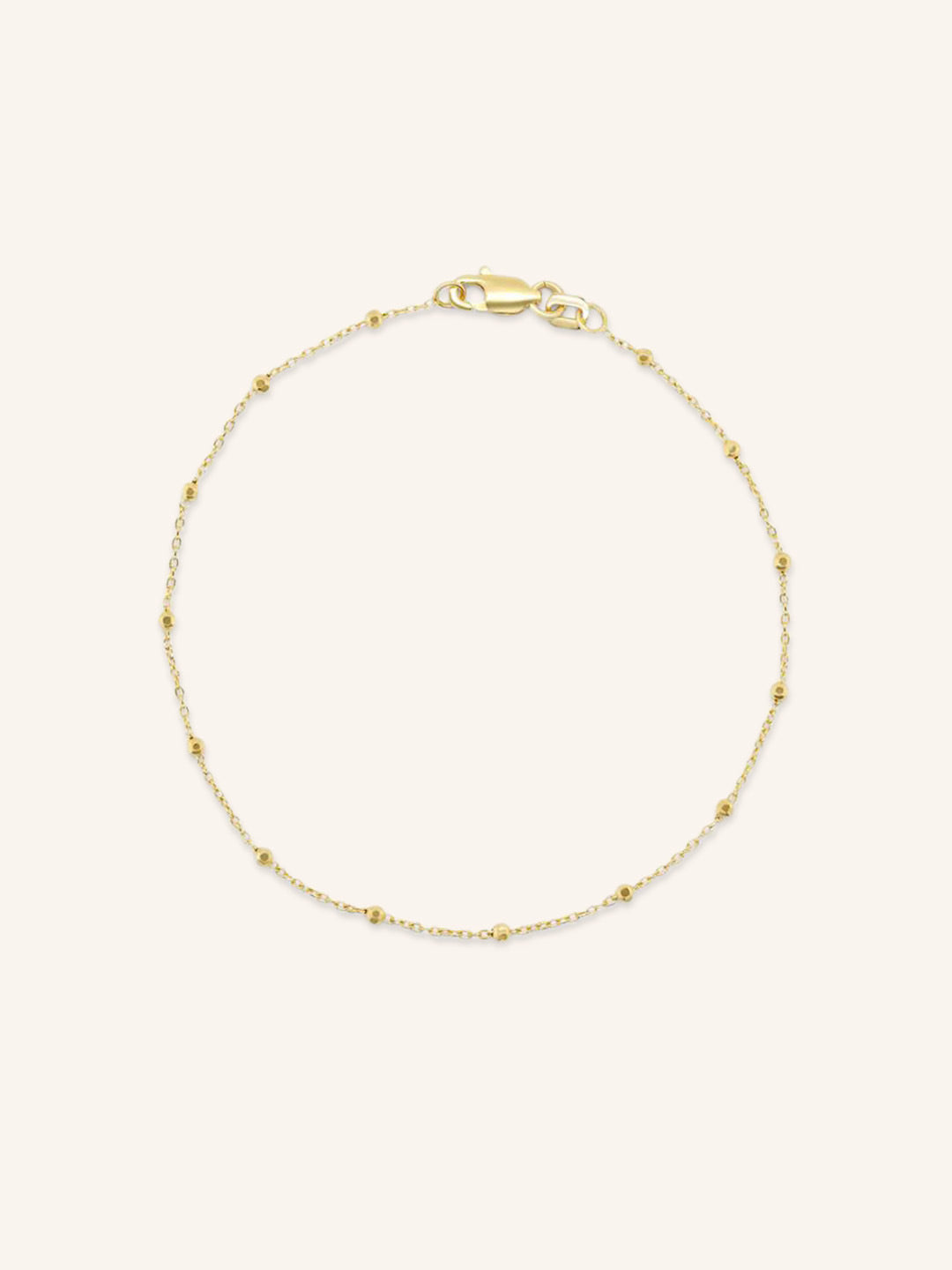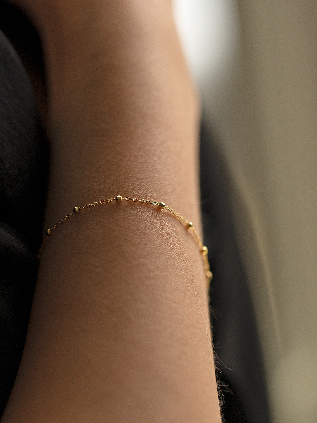 All of our bracelets are crafted from solid 14k gold, not plated or vermeil. This means they won't tarnish or fade over time with everyday wear.