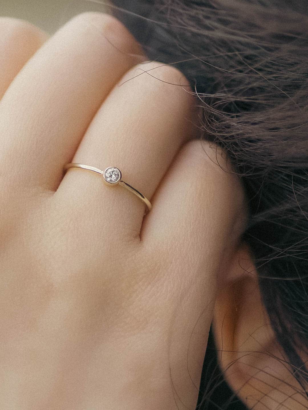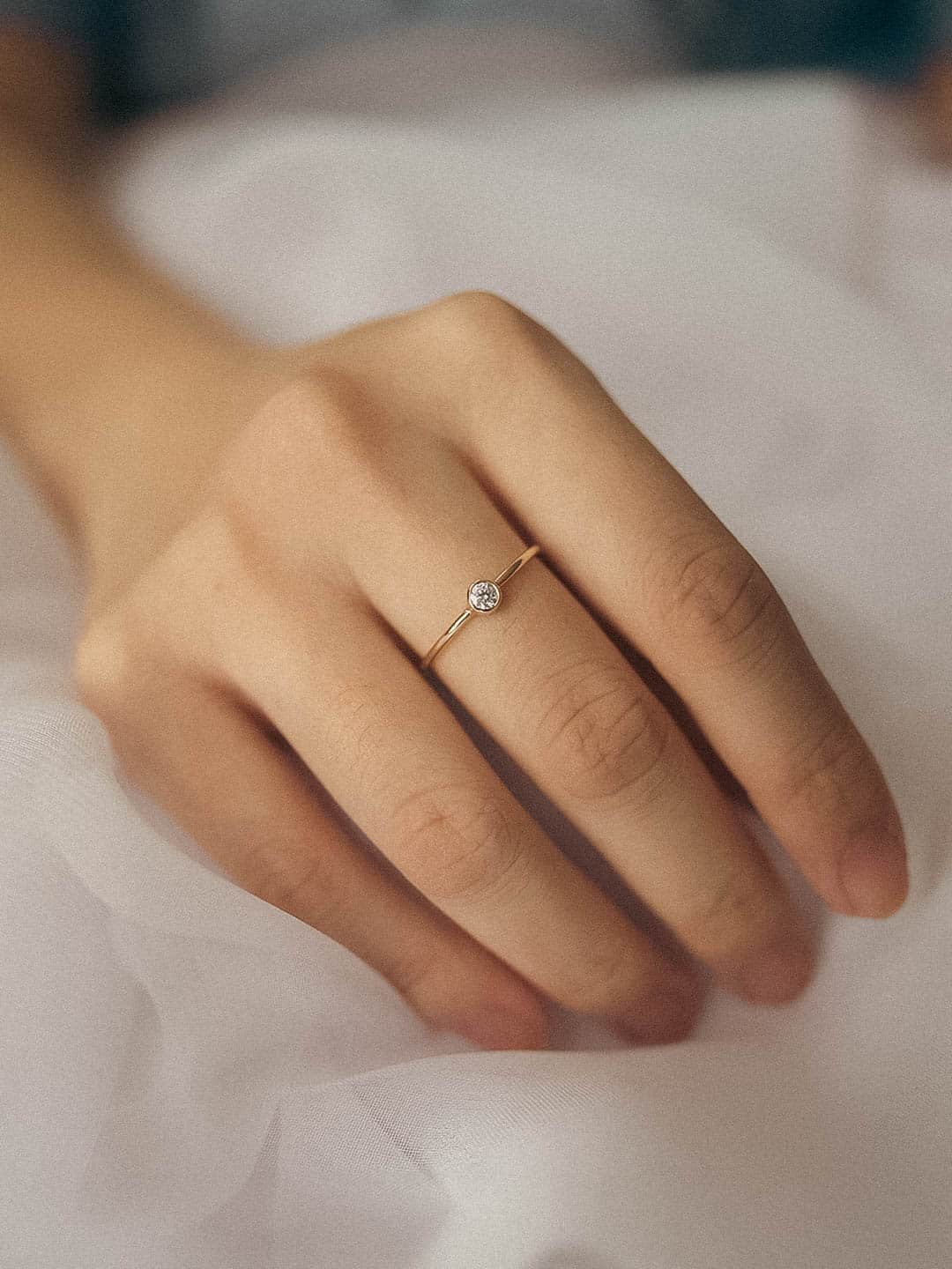 I picked out this ring for my engagement ring (I suggested it to my boyfriend at the time :) ), because I was looking for something really simple, on the smaller size, and elegant. I also love the bezel setting, it gives it a bit of a modern feel that I love. I absolutely love it. I had some issues with a local jeweler resizing it, and the customer service at A Gilded Leaf was incredibly helpful and put me at ease. I have it paired with the 1.5 mm band and I couldn't be happier. Thank you!