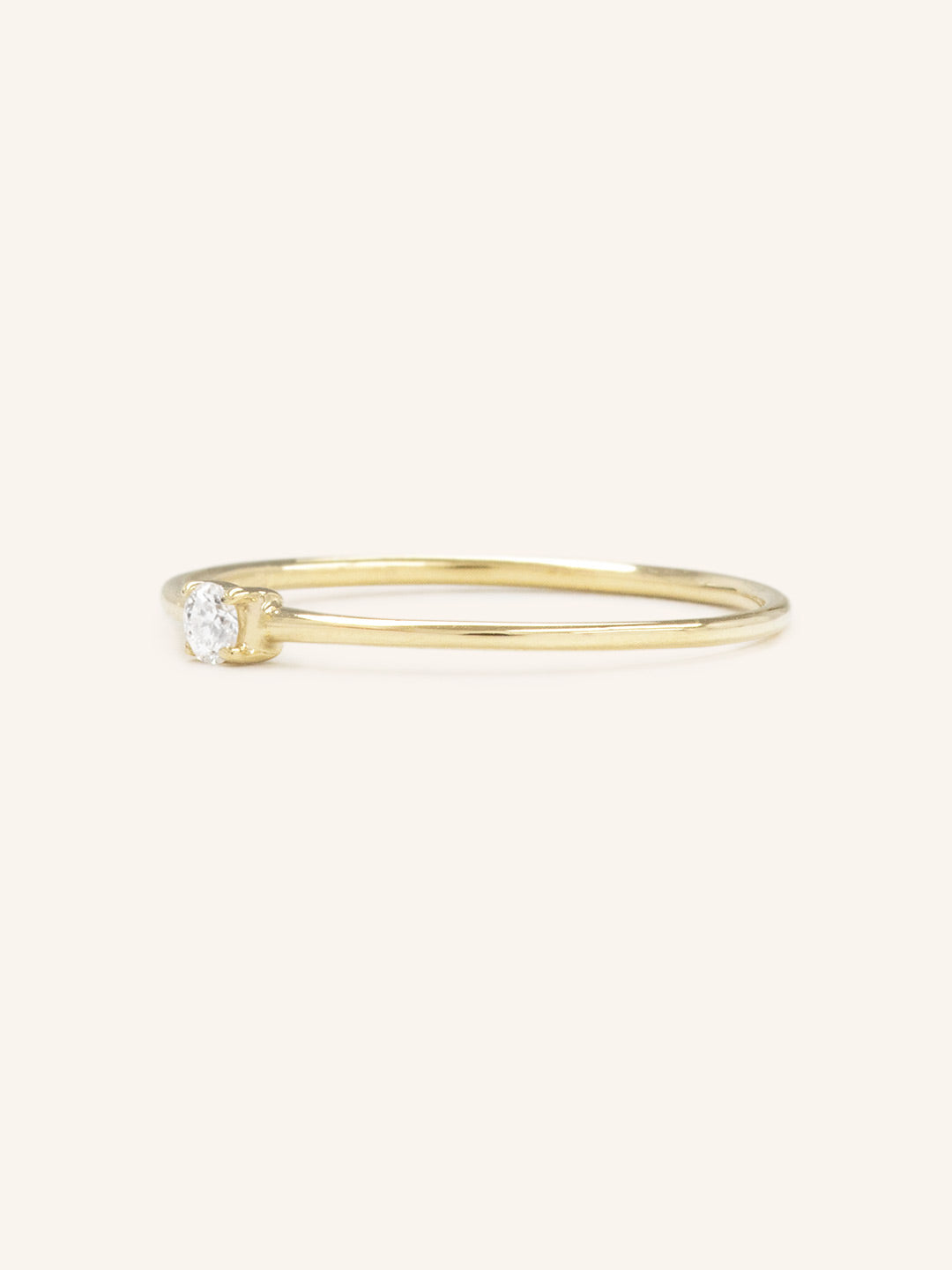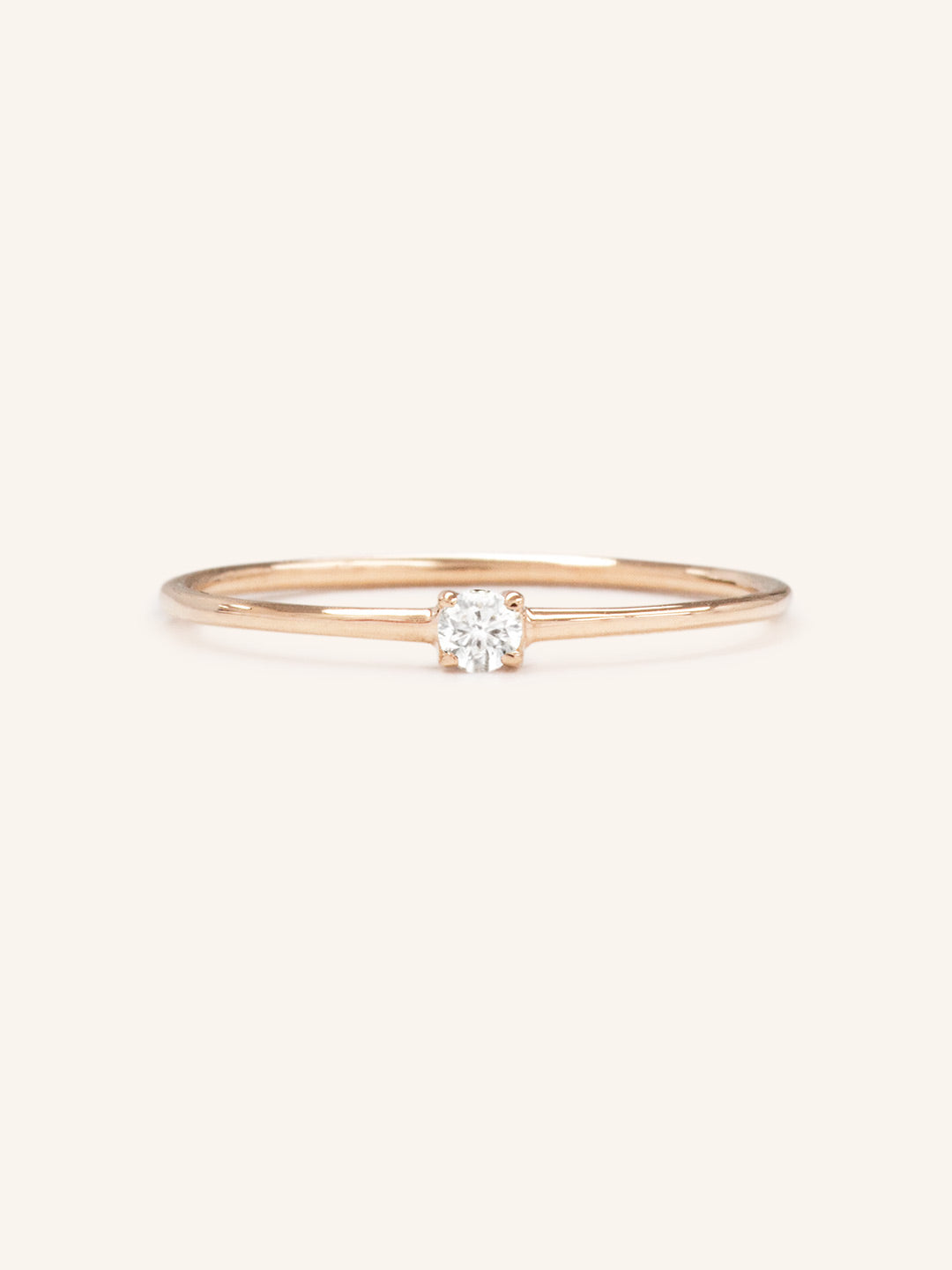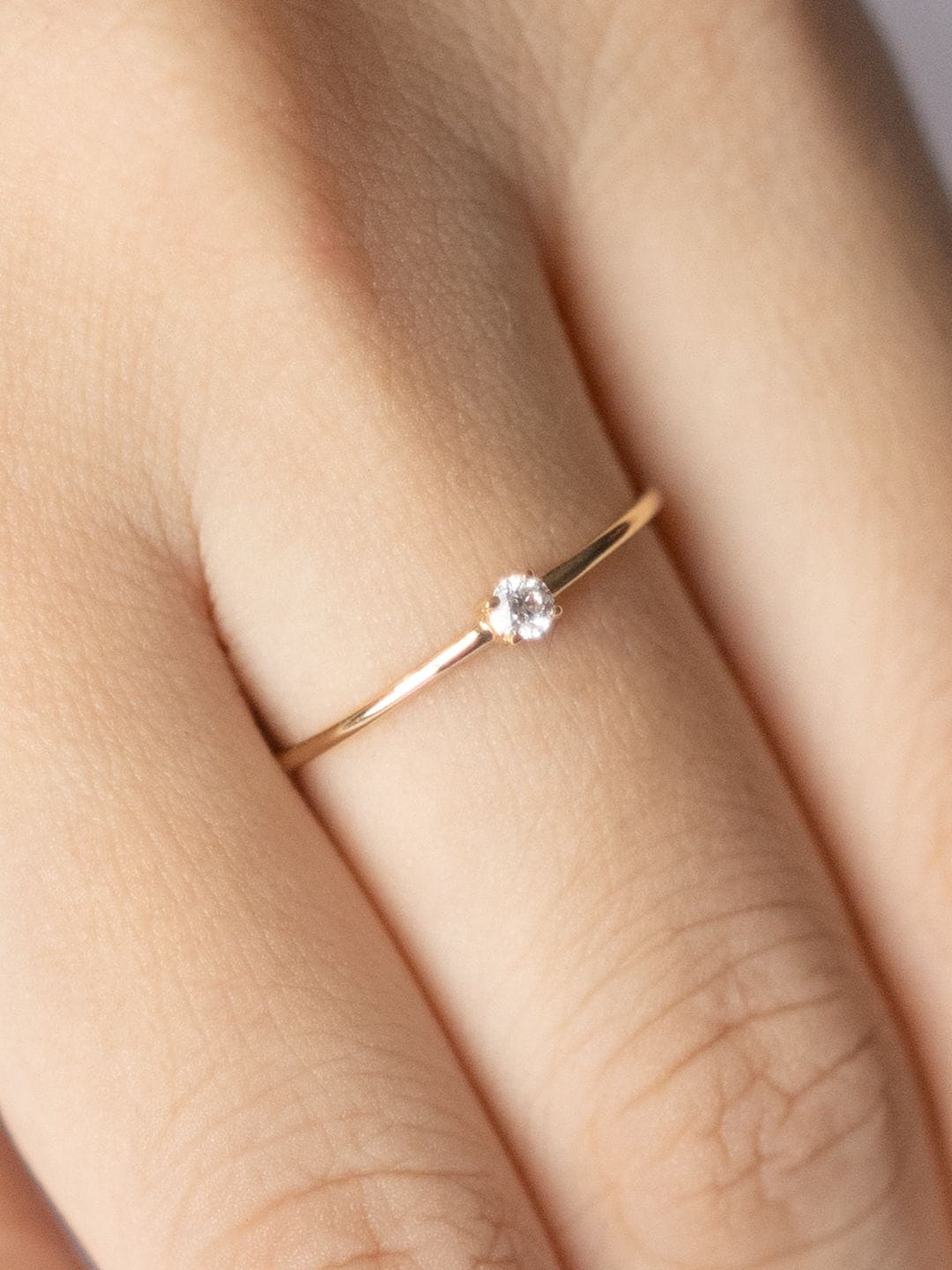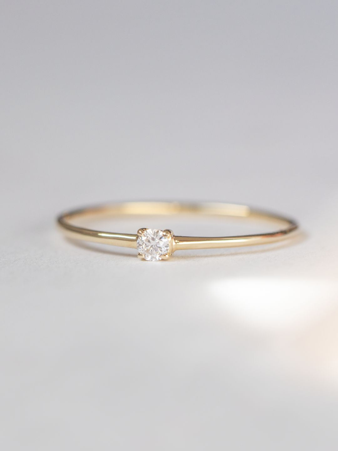 A luminous quintessential beauty. This petite four-prong ring features a sparkling diamond. It's set in a dainty ring that can be worn from day to night.