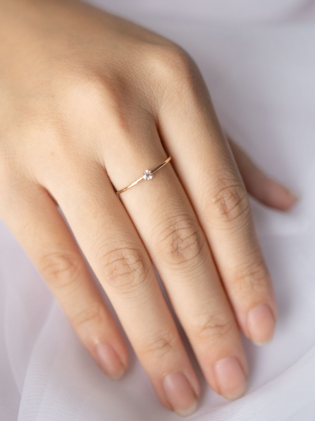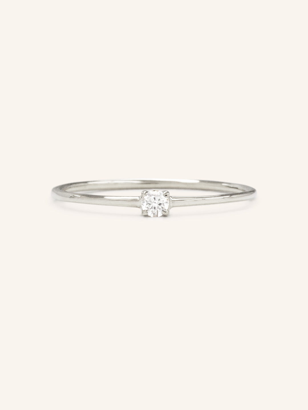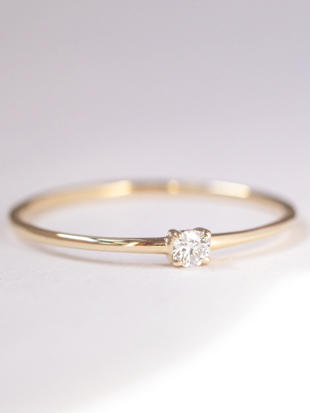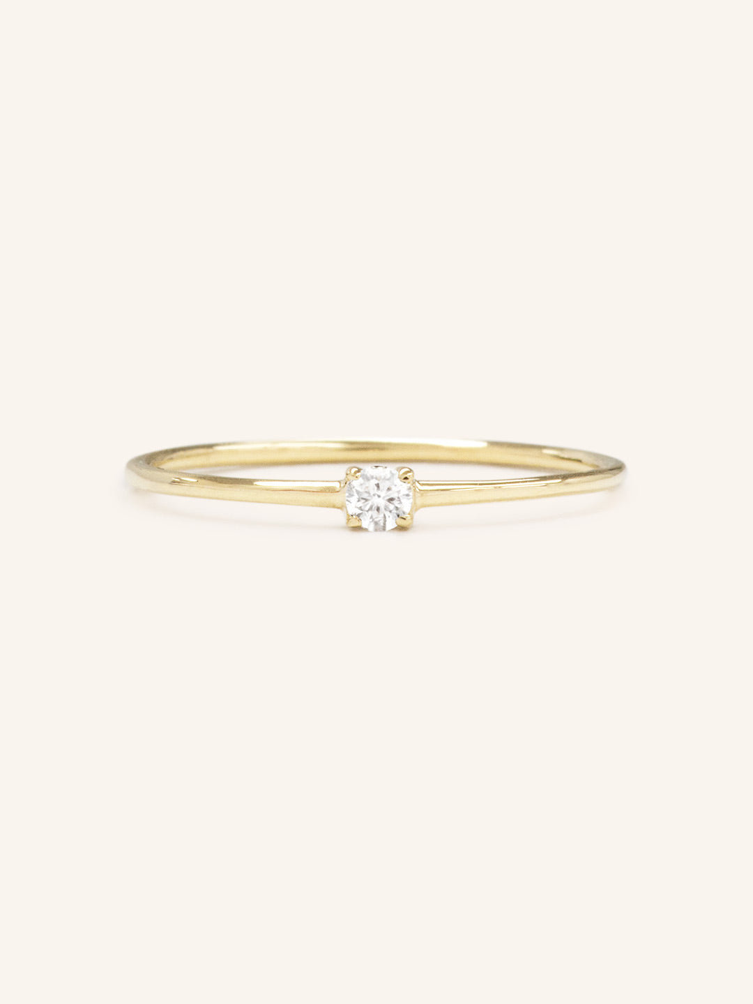 A luminous quintessential beauty. This petite four-prong ring features a sparkling diamond. It's set in a dainty ring that can be worn from day to night.