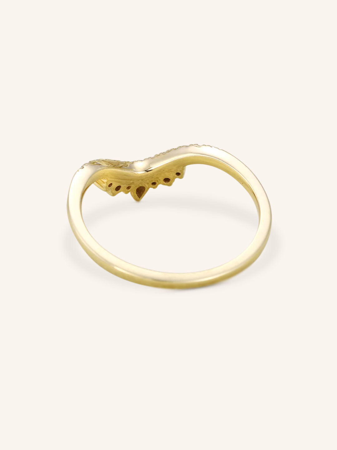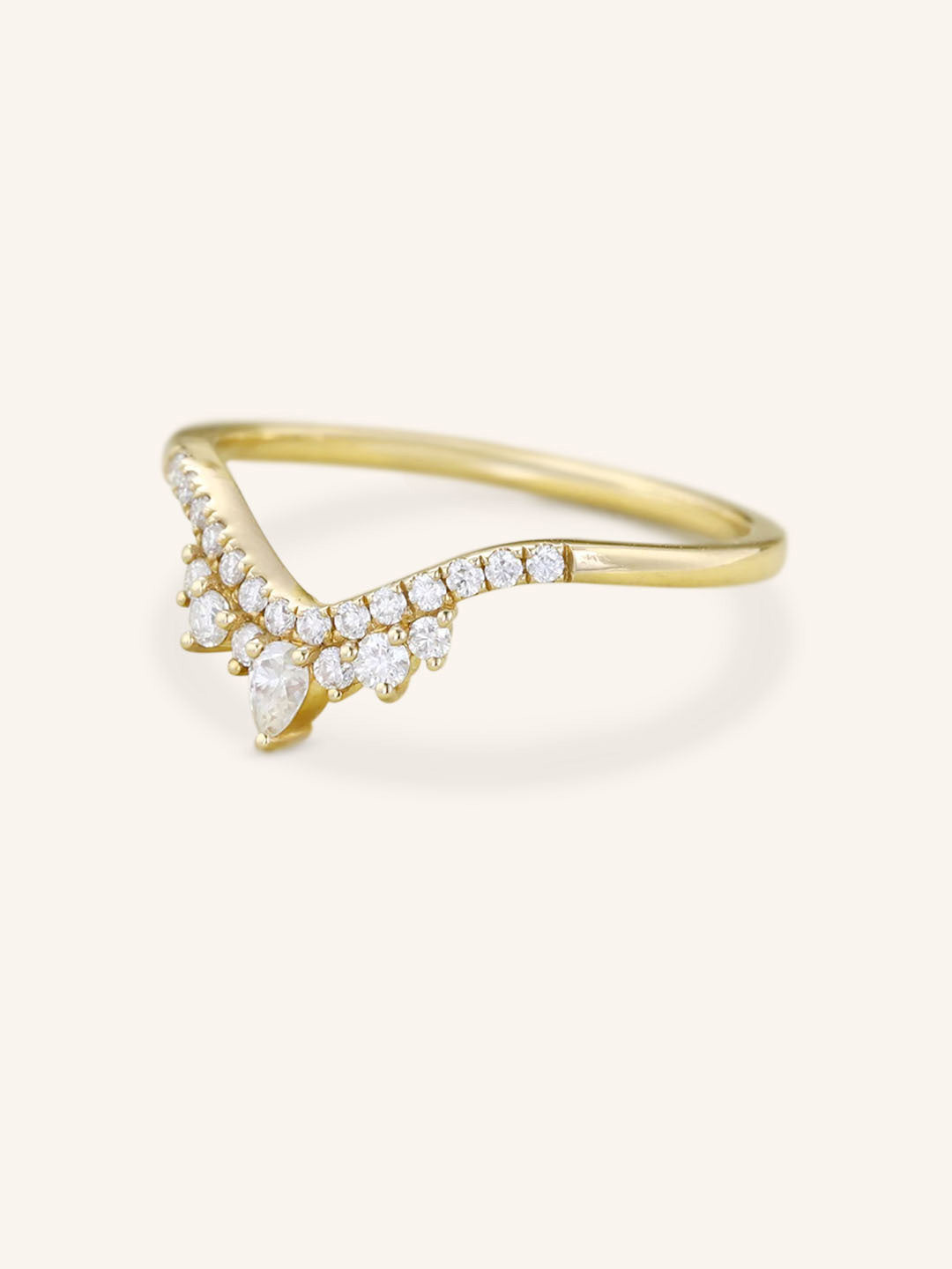 Featuring a double row of diamonds in a curved nesting design, this band adds extra sparkle and dimension to your special day. Create a stunning layered look or wear it solo for a touch of elegance.