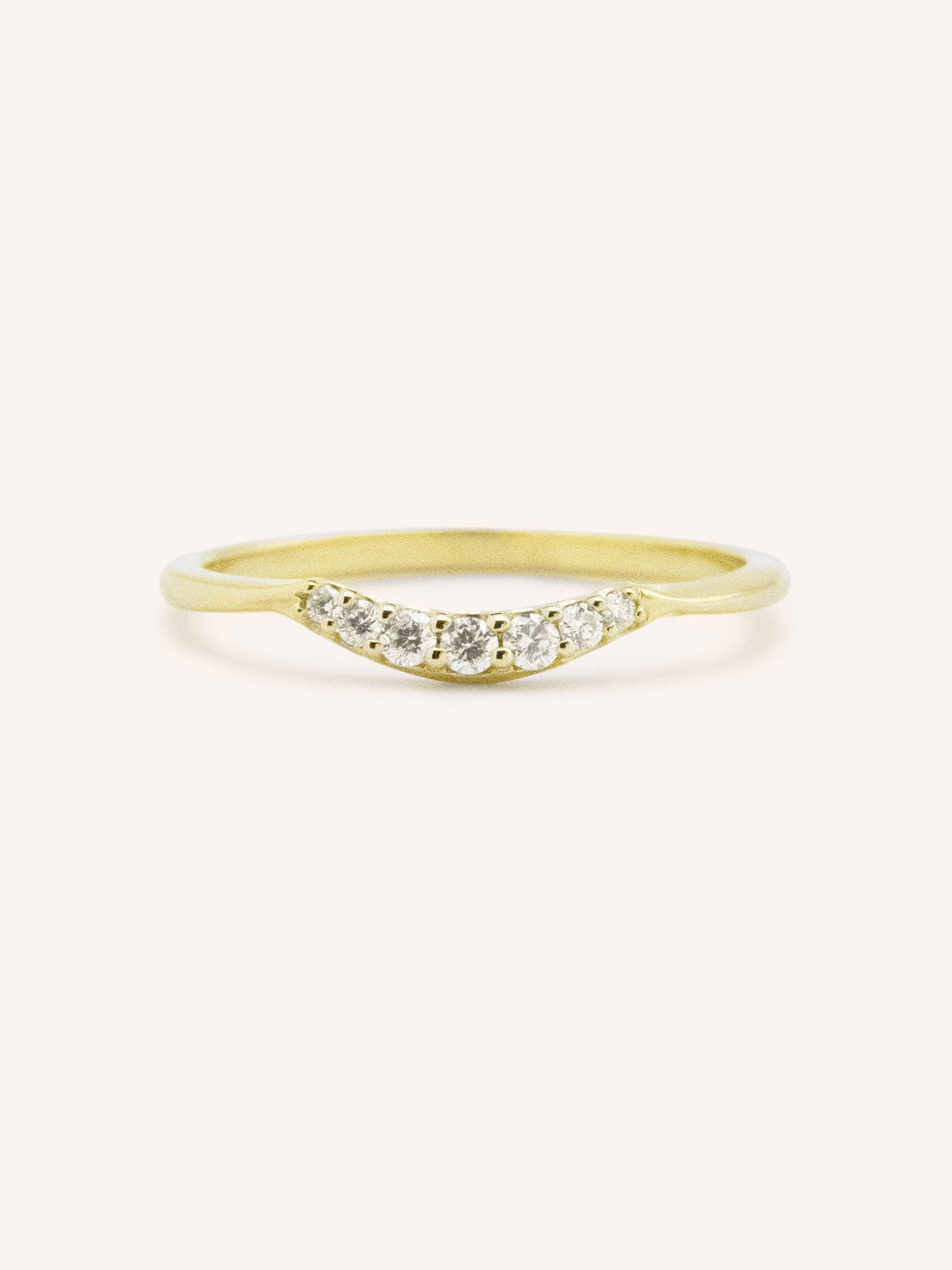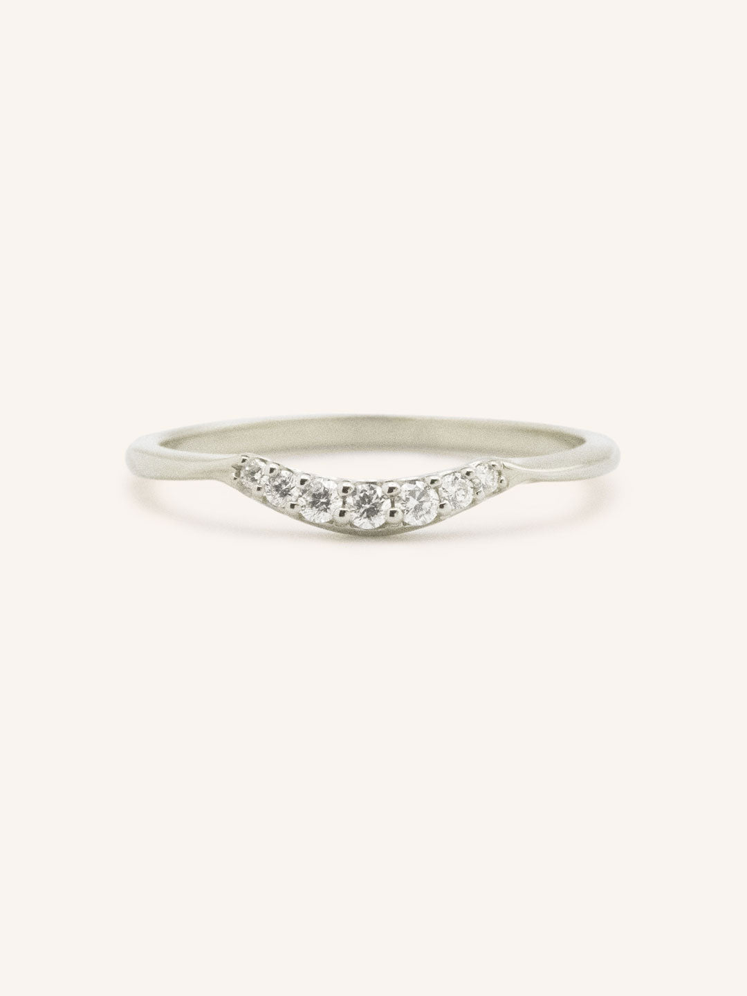 Gracefully contoured to complement an engagement ring, the Beta One Standard Curved Diamond Wedding Band features a row of delicate diamonds set along a gentle curve. Its refined silhouette adds subtle sparkle and timeless elegance to your bridal stack.
