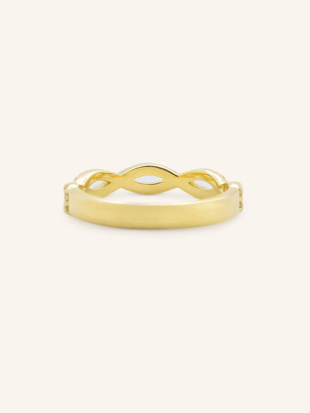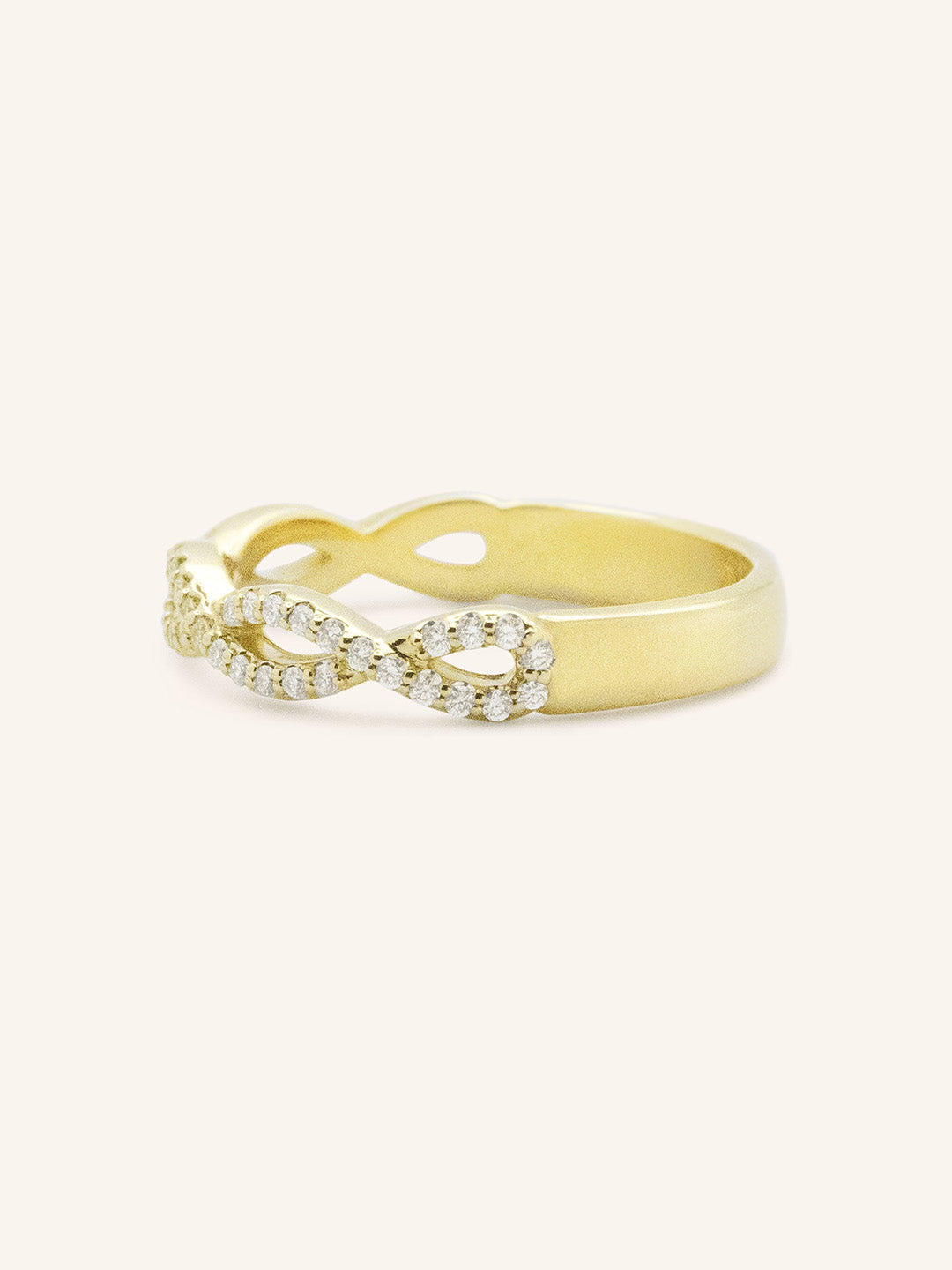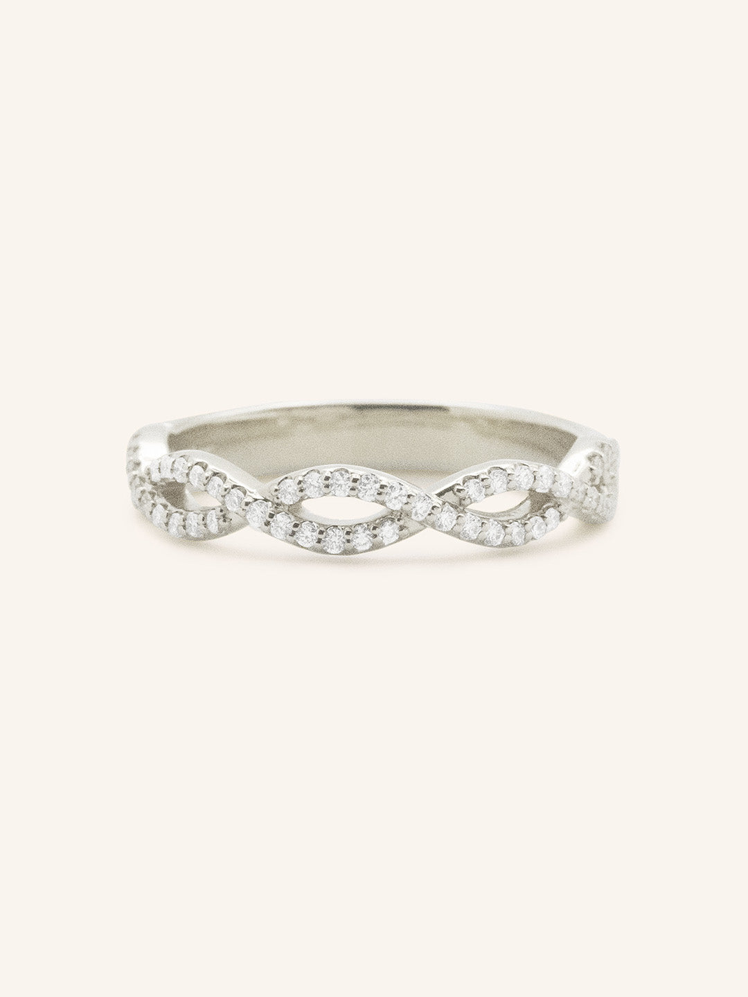 This stunning design features two interwoven strands, each lined with shimmering diamonds that catch the light from every angle. Symbolizing two paths coming together in perfect harmony, the Double Interwoven Diamond Wedding Ring offers both elegance and depth. A brilliant choice for a wedding band or a meaningful celebration of lasting love.