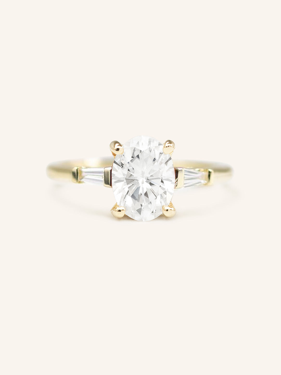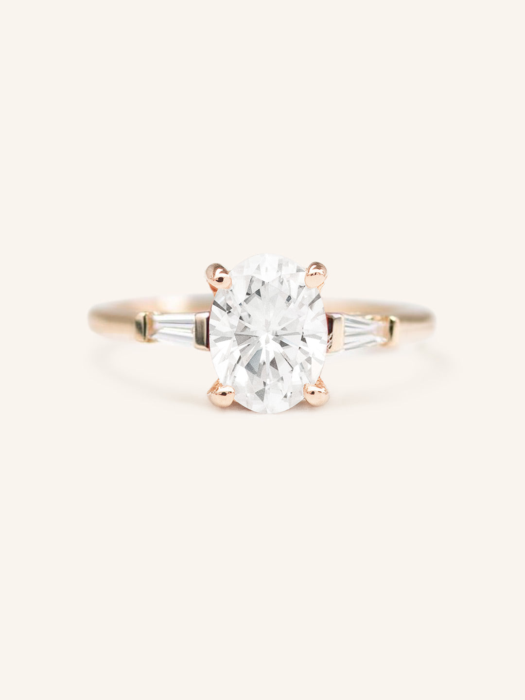 Featuring an oval faceted lab-grown diamond, available in 7x5mm, 8x6mm, or 9x7mm size. *Sizes are approximate and measurements are subject to change/alter to fit. The center stone will come graded with a certified report.