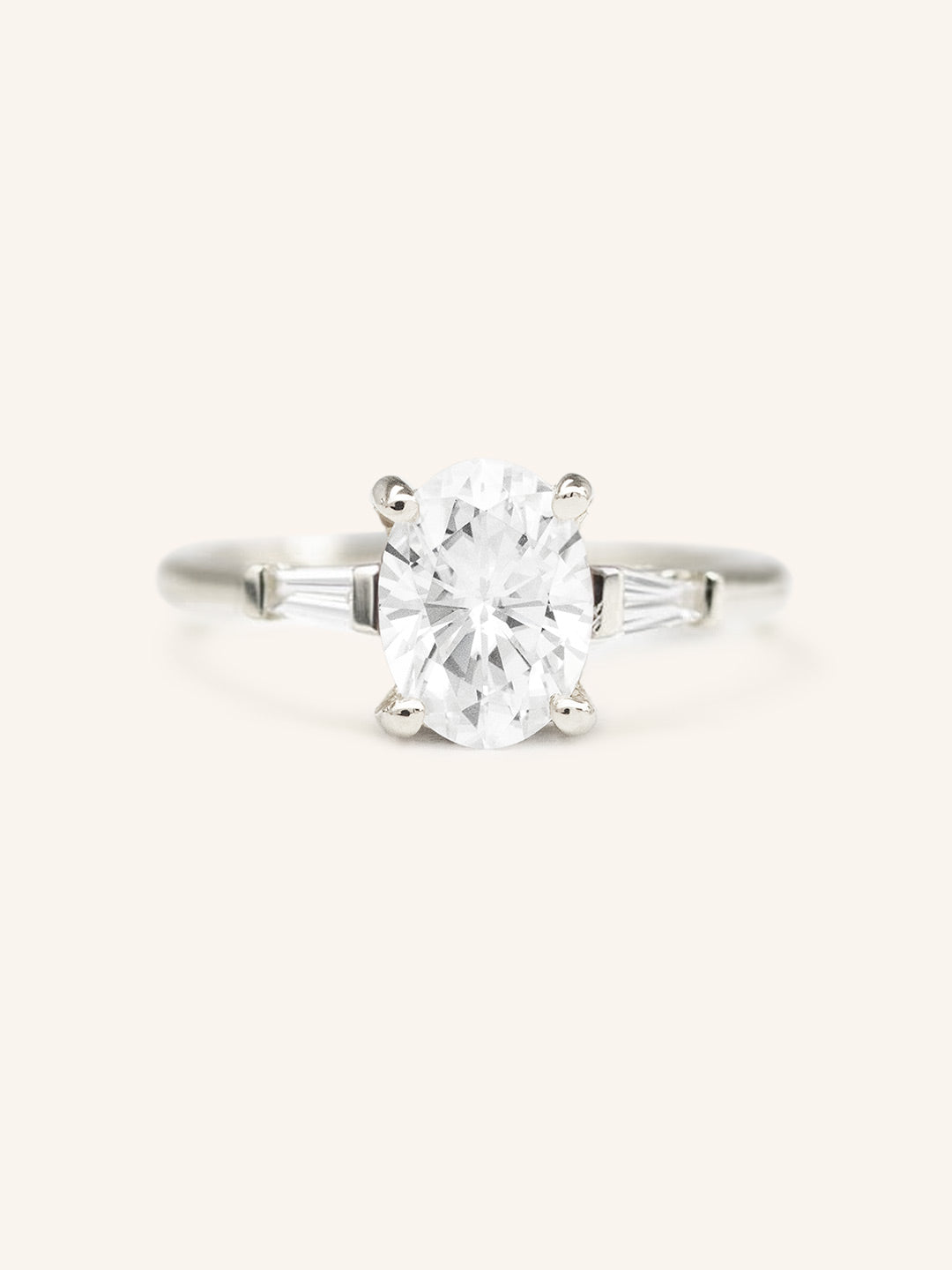 Stately Manor Oval Diamond Tapered Baguette Three Stone Engagement Ring