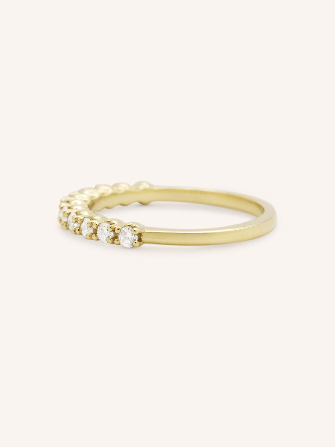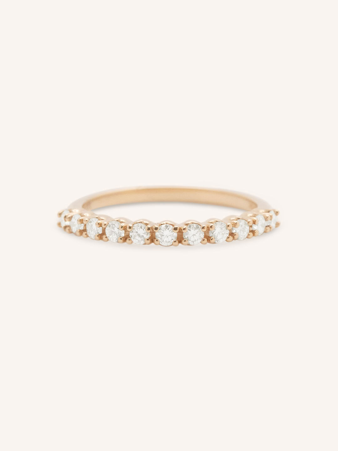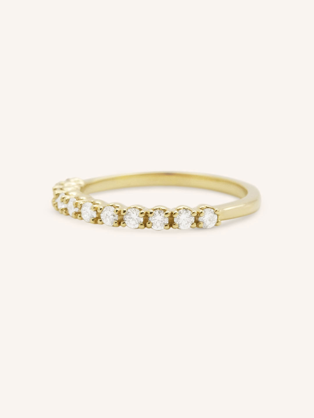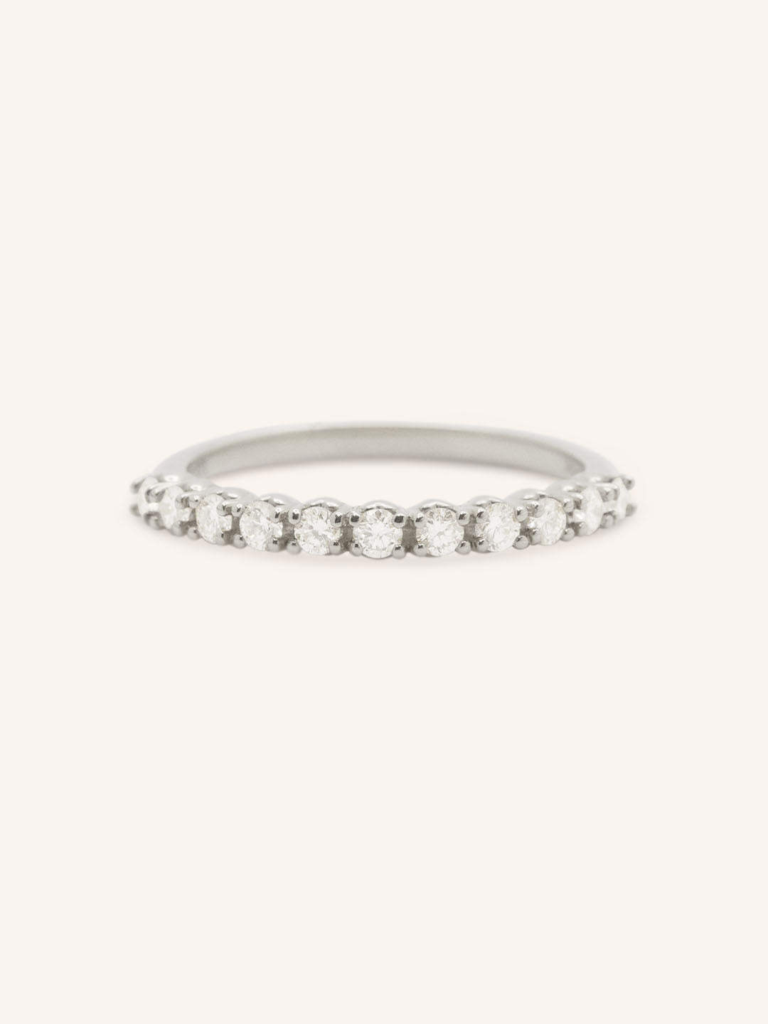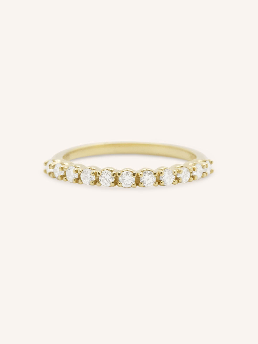 The Sutton Band is a timeless classic, showcasing a row of round brilliant diamonds set in a graceful shared-prong style. Whether worn alone, as a wedding band, or to mark a milestone, this elegant piece captures the enduring beauty of love.