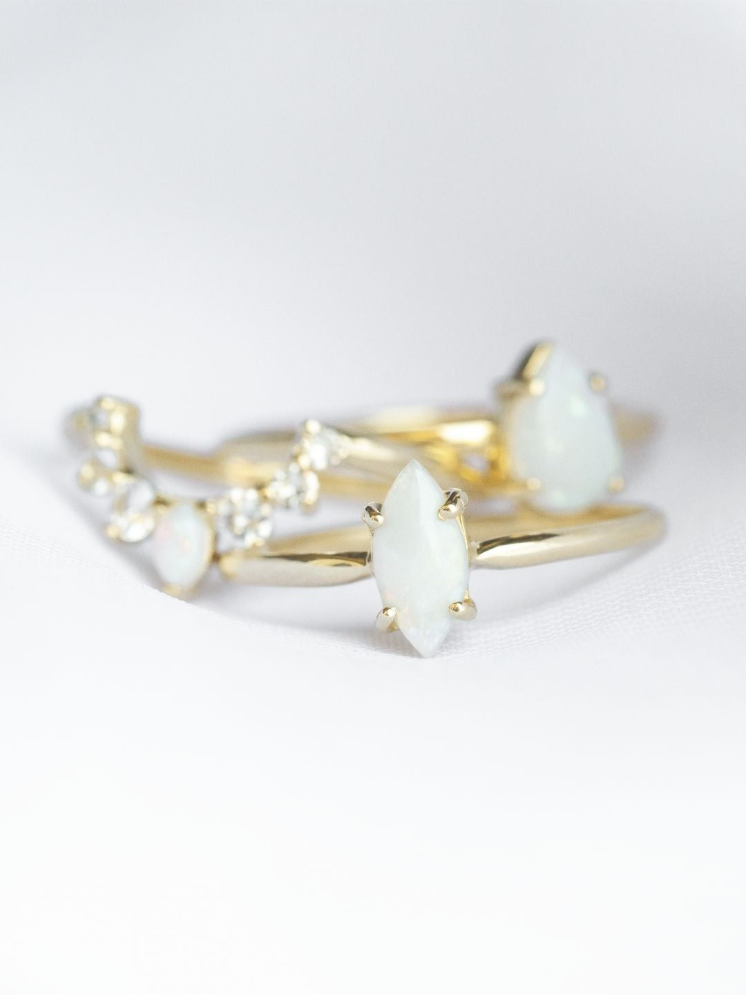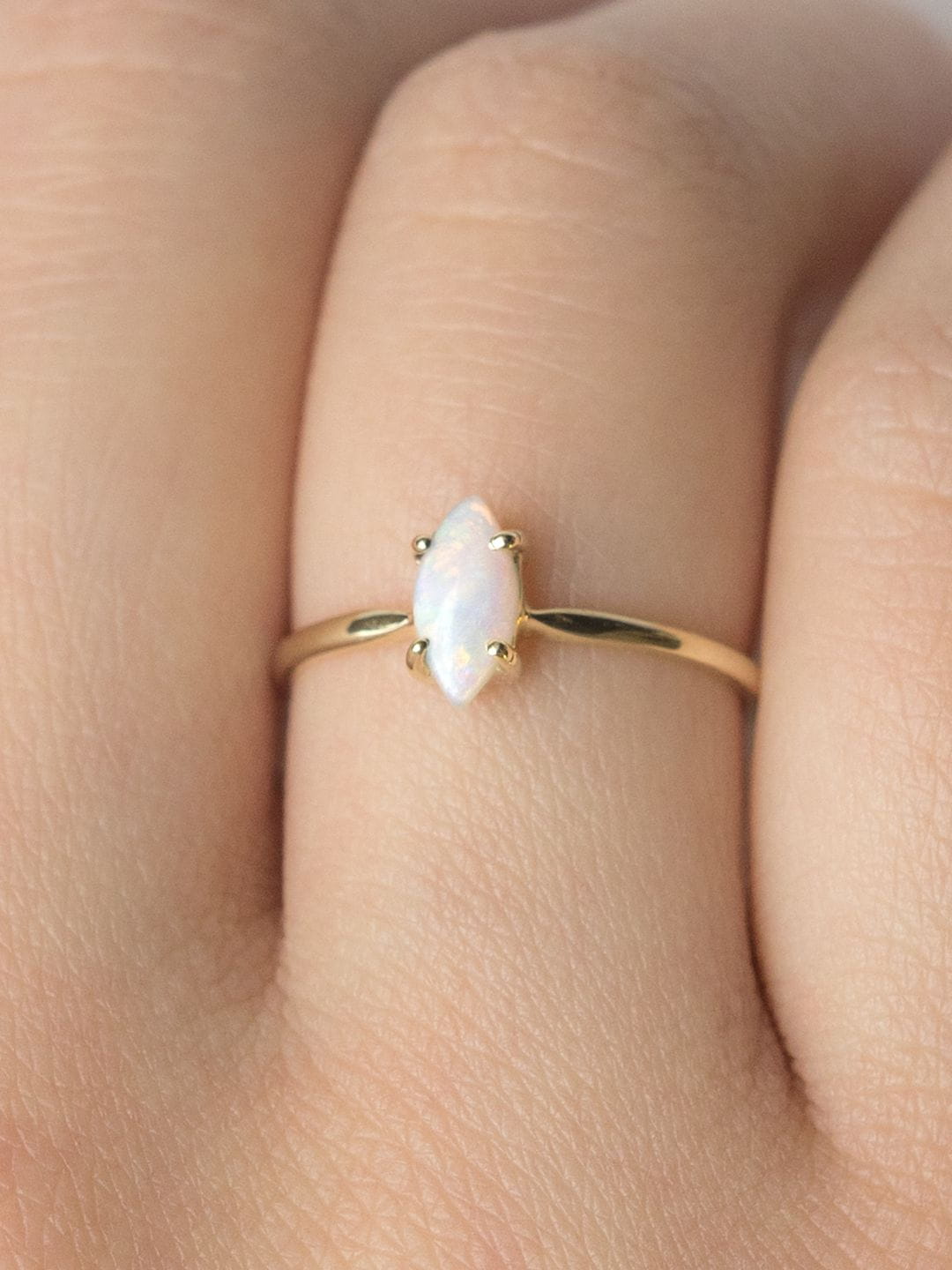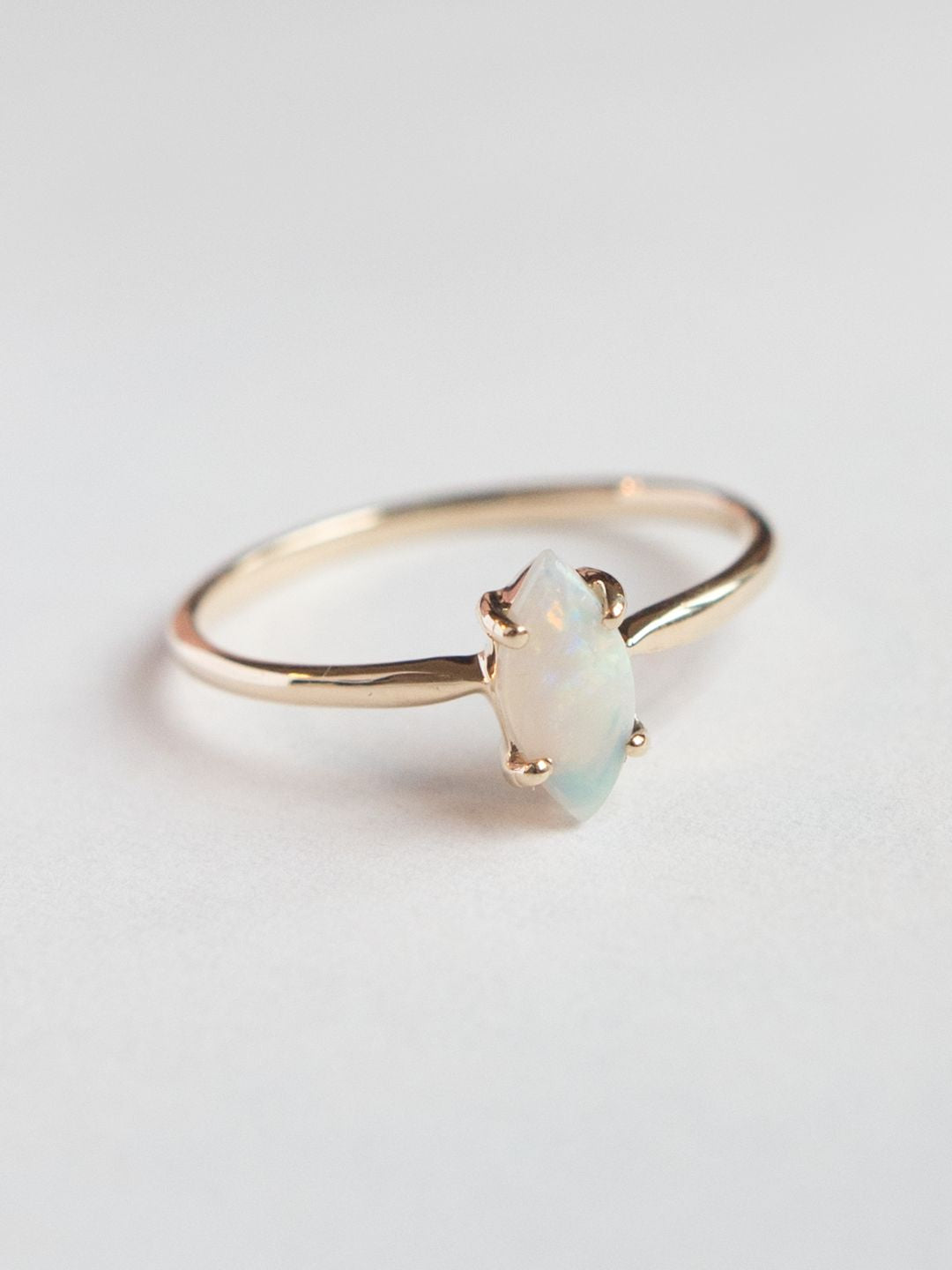 I spent a lot of time browsing around for the ring that was in my mind’s eye for my wedding band. I found this opal ring at a gilded leaf and it seemed perfect! I got it in the mail yesterday and it’s everything I could have wanted and more! It’s light-weight and comfortable, beautifully crafted with quality materials and I love the values a gilded leaf stand for. I put it on my finger and I don’t plan on ever taking it off. I am so pleased!