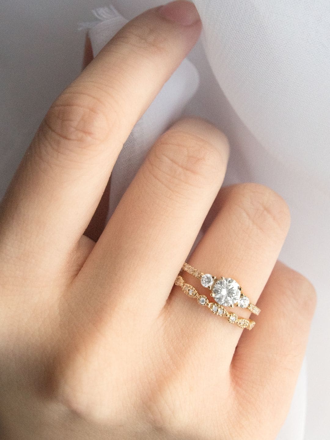 All of our engagement rings feature natural, lab-grown diamonds, and/or moissanites. They are ethically sourced and hand-selected for their quality and brilliance. Each product page specifies the stone type.