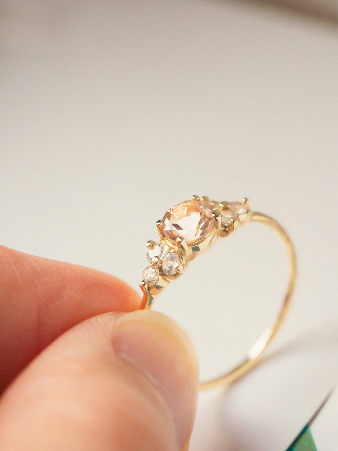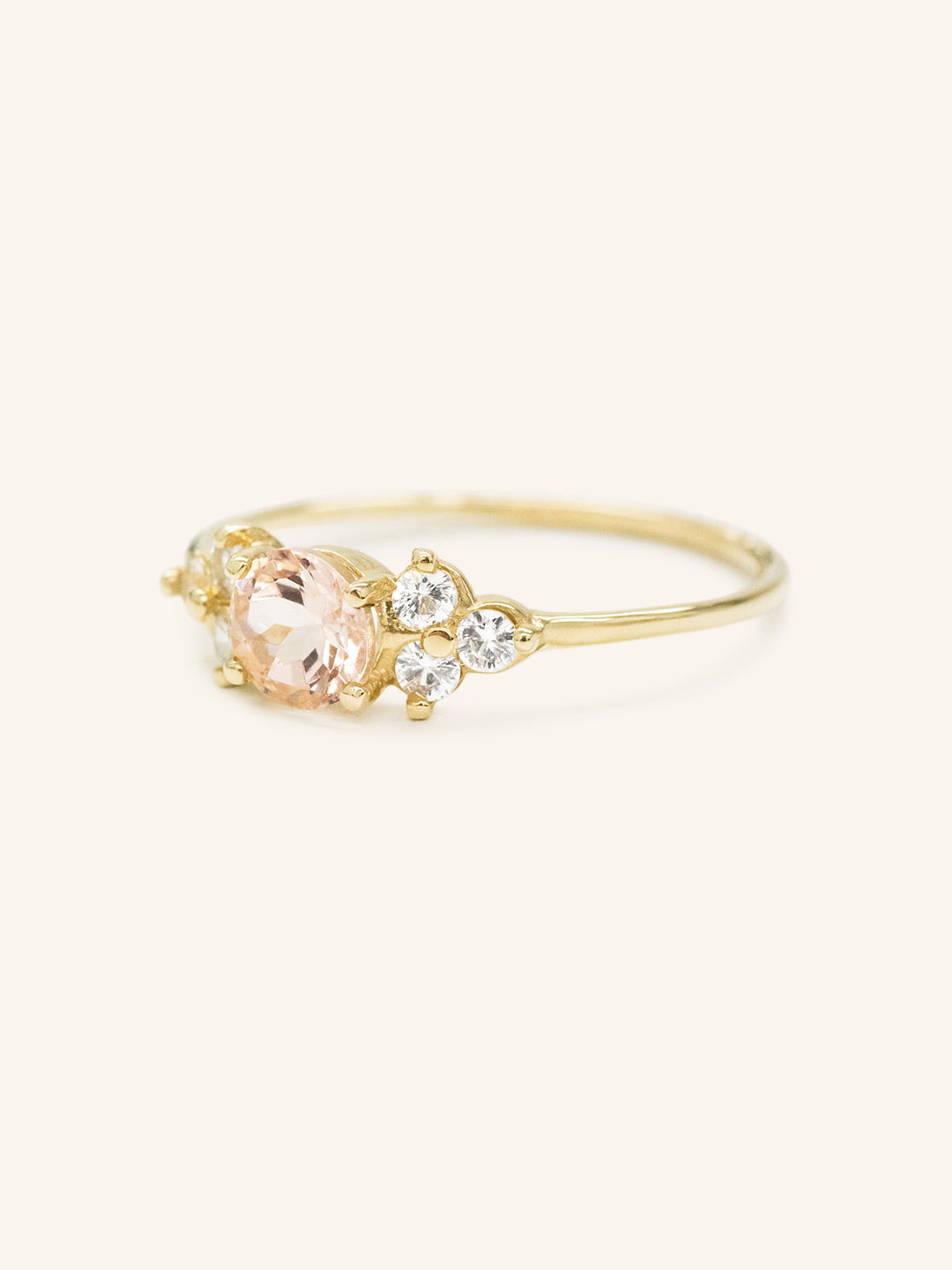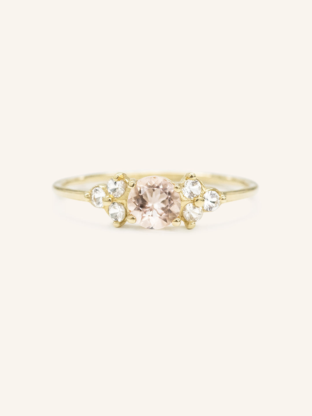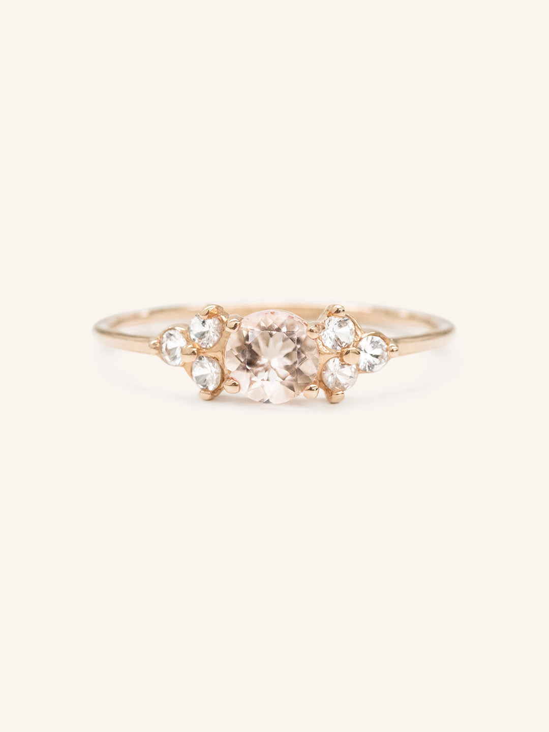 A swoon worthy essential piece. This stunning pale blush pink morganite features white sapphire accents made to complement your blushing bride. Present this as a token of your affection and love to the person you want to spend your life with.