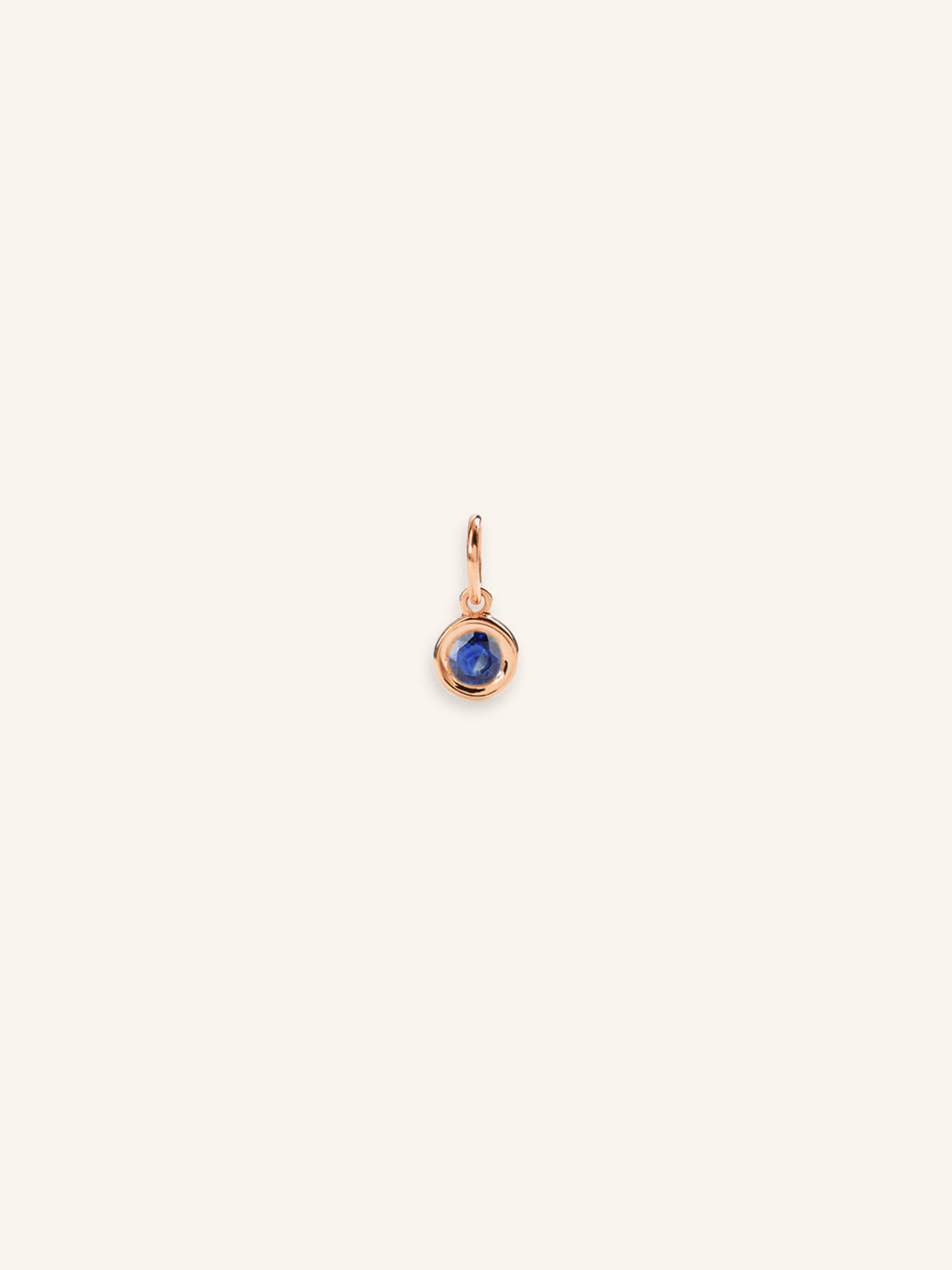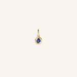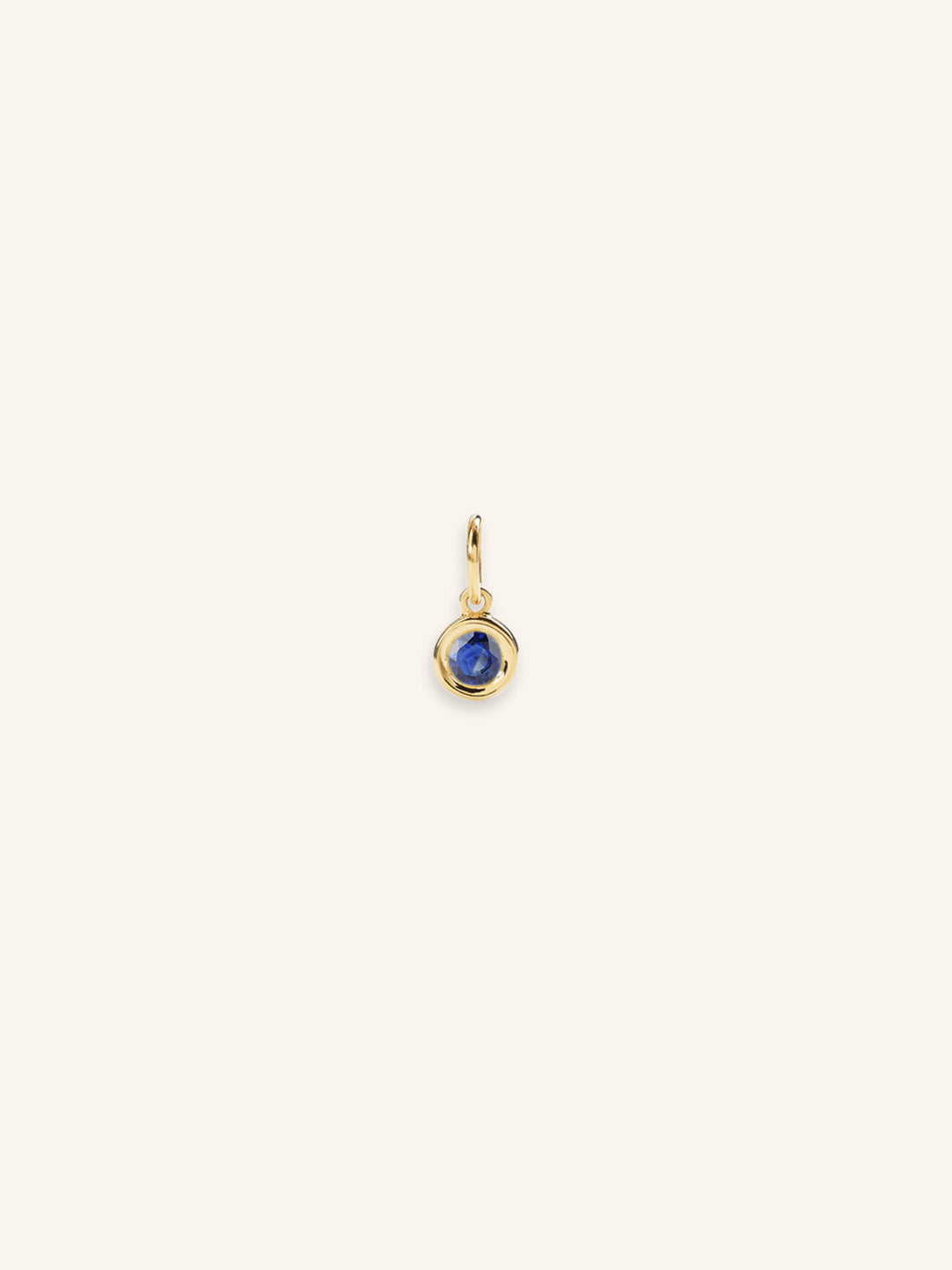 This 14k solid gold charm features a single blue sapphire gemstone, the birthstone for September, in a beautiful bezel setting. The gemstone's brilliance and clarity make it a stunning addition to any jewelry collection. This versatile charm can be worn alone or paired with other charms to create a personalized piece, and makes a thoughtful gift for someone special.