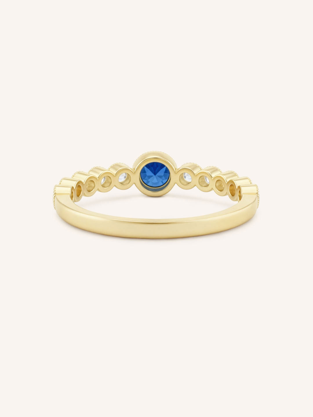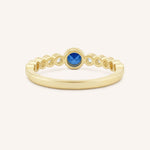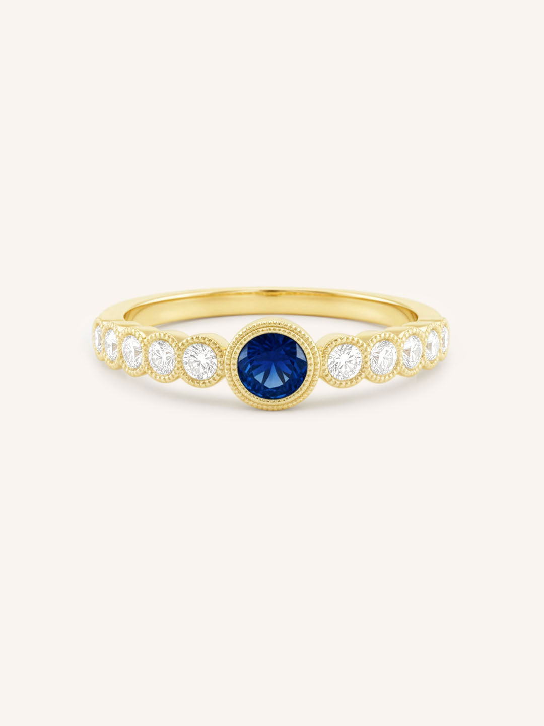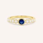 The Chesterway Blue Sapphire Diamond Accented Milgrain Ring features a vivid blue sapphire framed by shimmering diamond accents and delicate milgrain detailing. Handcrafted in 14k gold, it blends vintage charm with refined elegance. A timeless piece that adds color, character, and meaning to any collection.