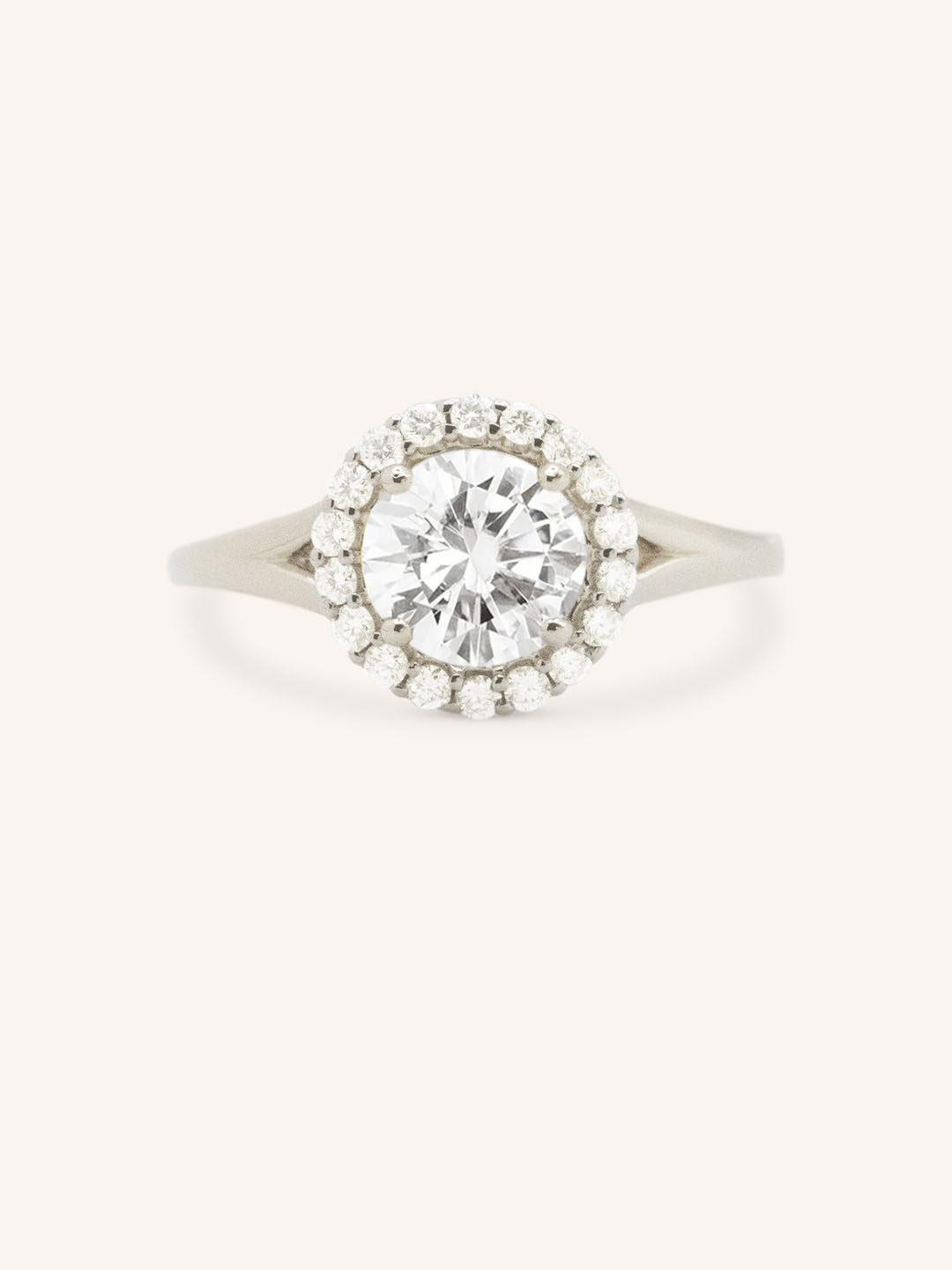 Emiko Round Diamond Halo Split Shank Engagement Ring