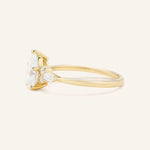 Featuring a pear cut lab-grown diamond, available in 8x5mm, 9x6mm, or 10x6.5mm sizes. *Sizes are approximate and measurements are subject to change/alter to fit. The center stone will come with a certified report.