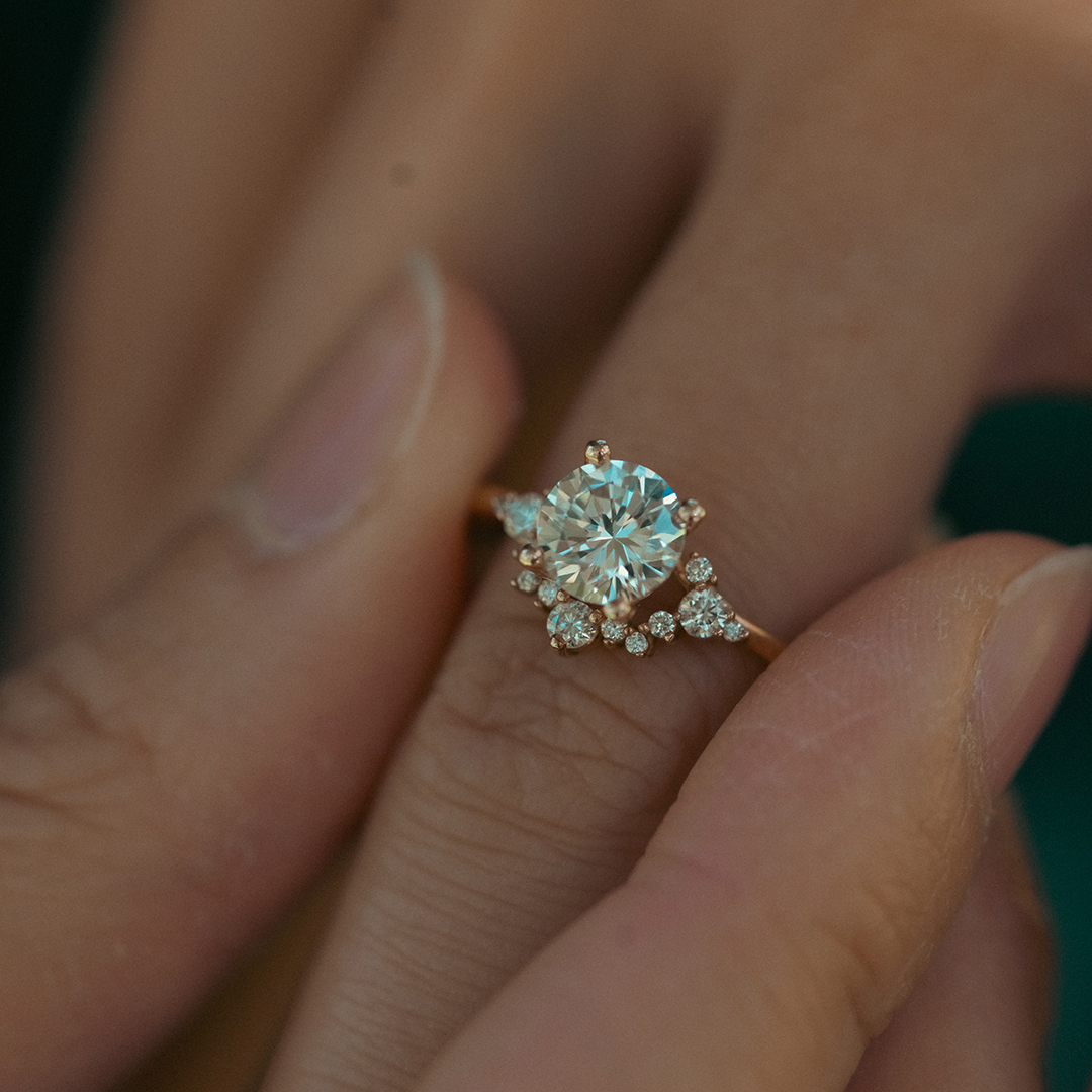 All of our engagement rings feature natural, lab-grown diamonds, and/or moissanites. They are ethically sourced and hand-selected for their quality and brilliance. Each product page specifies the stone type.