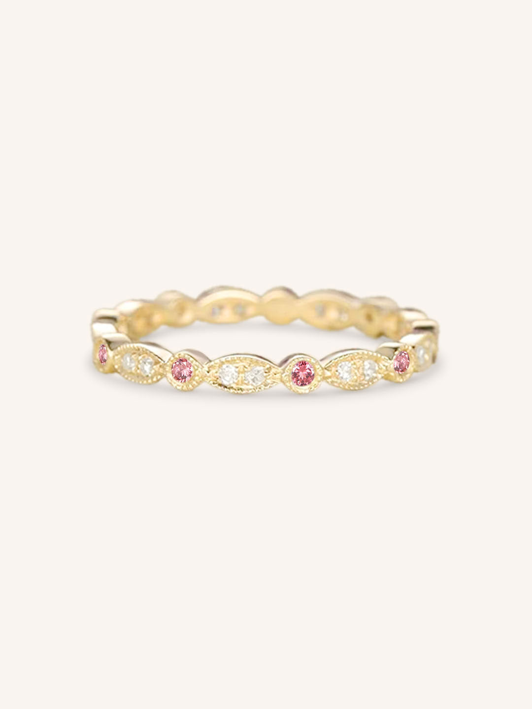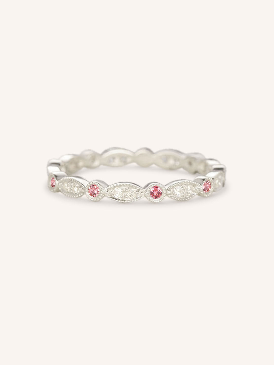 Pink Tourmaline Diamond Milgrain Eternity Band