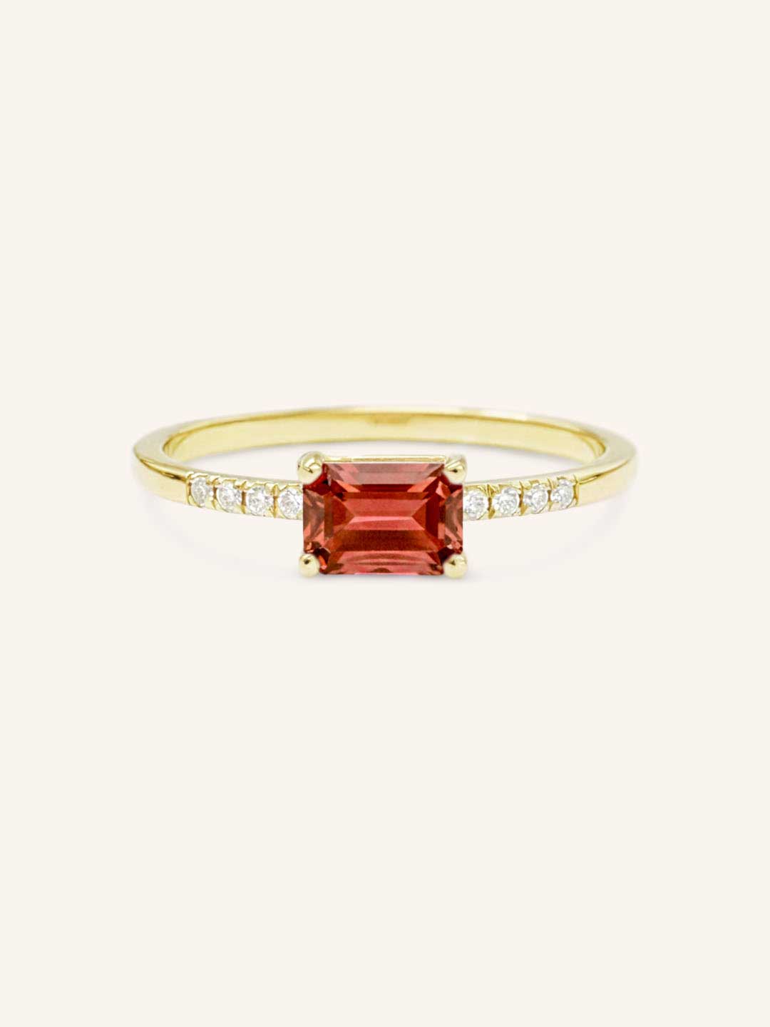 • One (1) Emerald Cut Natural Garnet (approx 0.75 ctw / 6x4mm, AA grading)