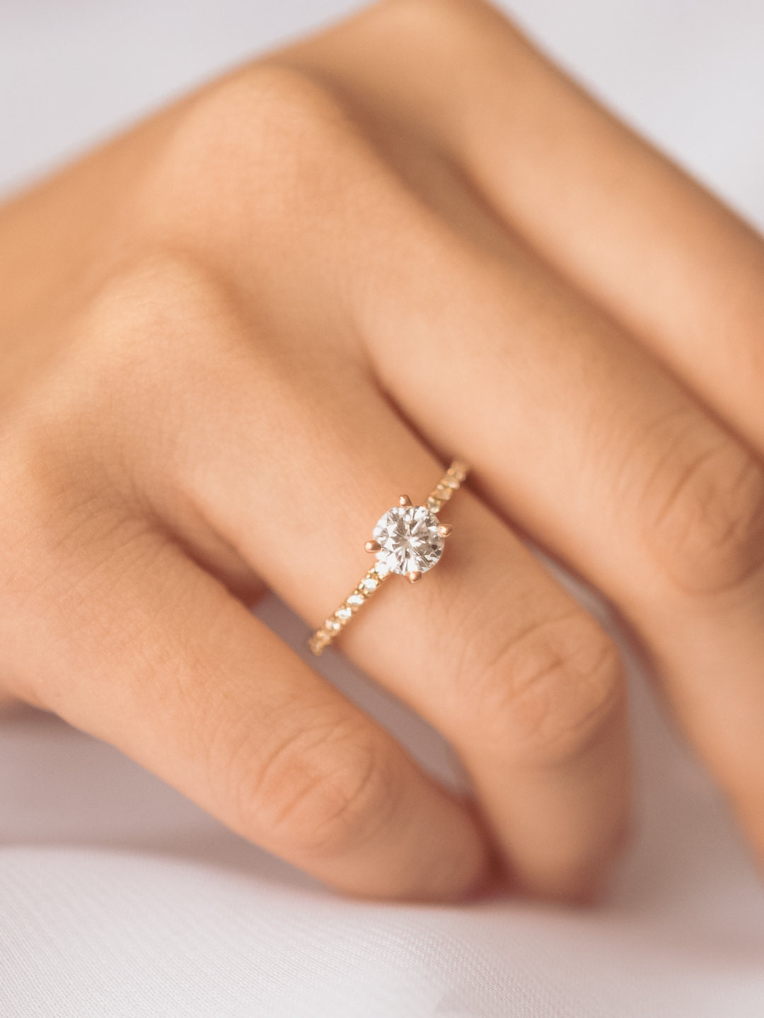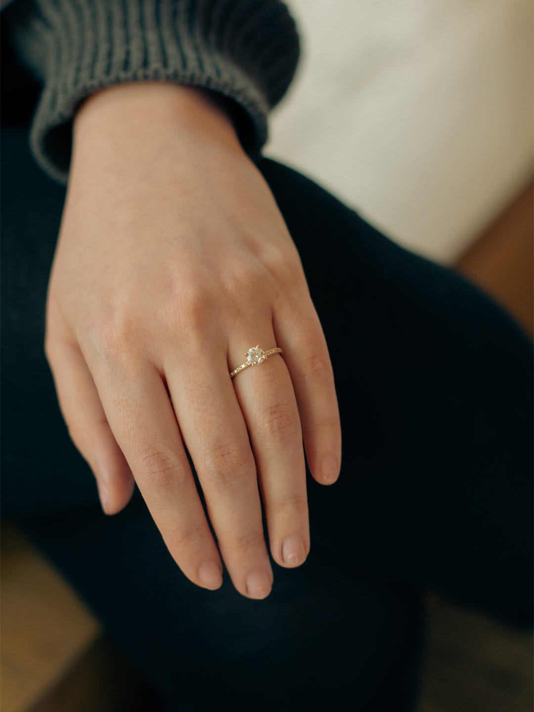 All of our engagement rings feature natural, lab-grown diamonds, and/or moissanites. They are ethically sourced and hand-selected for their quality and brilliance. Each product page specifies the stone type.