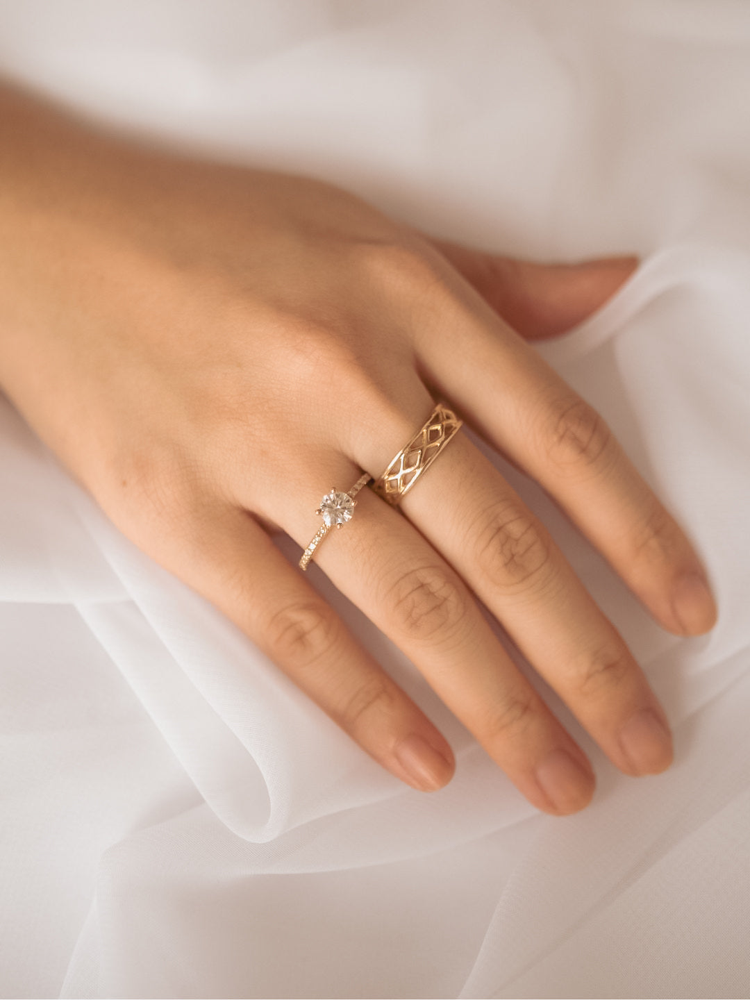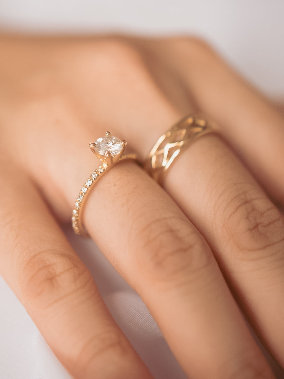 Our rings are made in 14k solid gold by default. We also offer 18k gold and platinum upon request. Please contact us for pricing and timelines for custom metals.