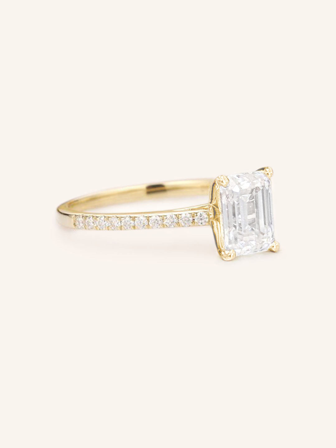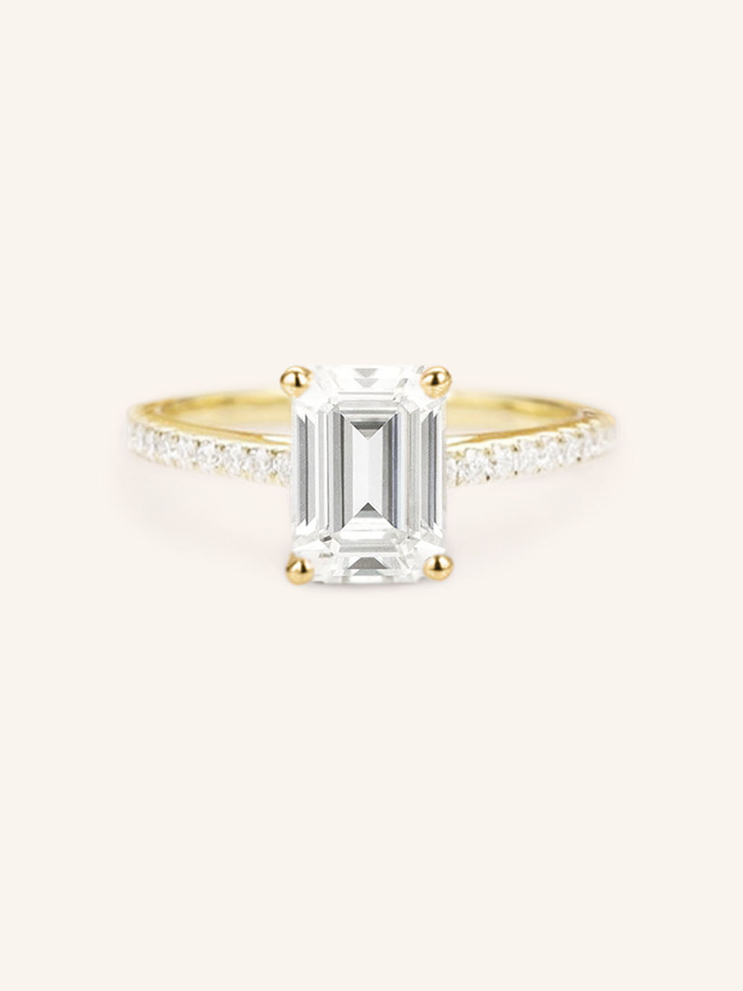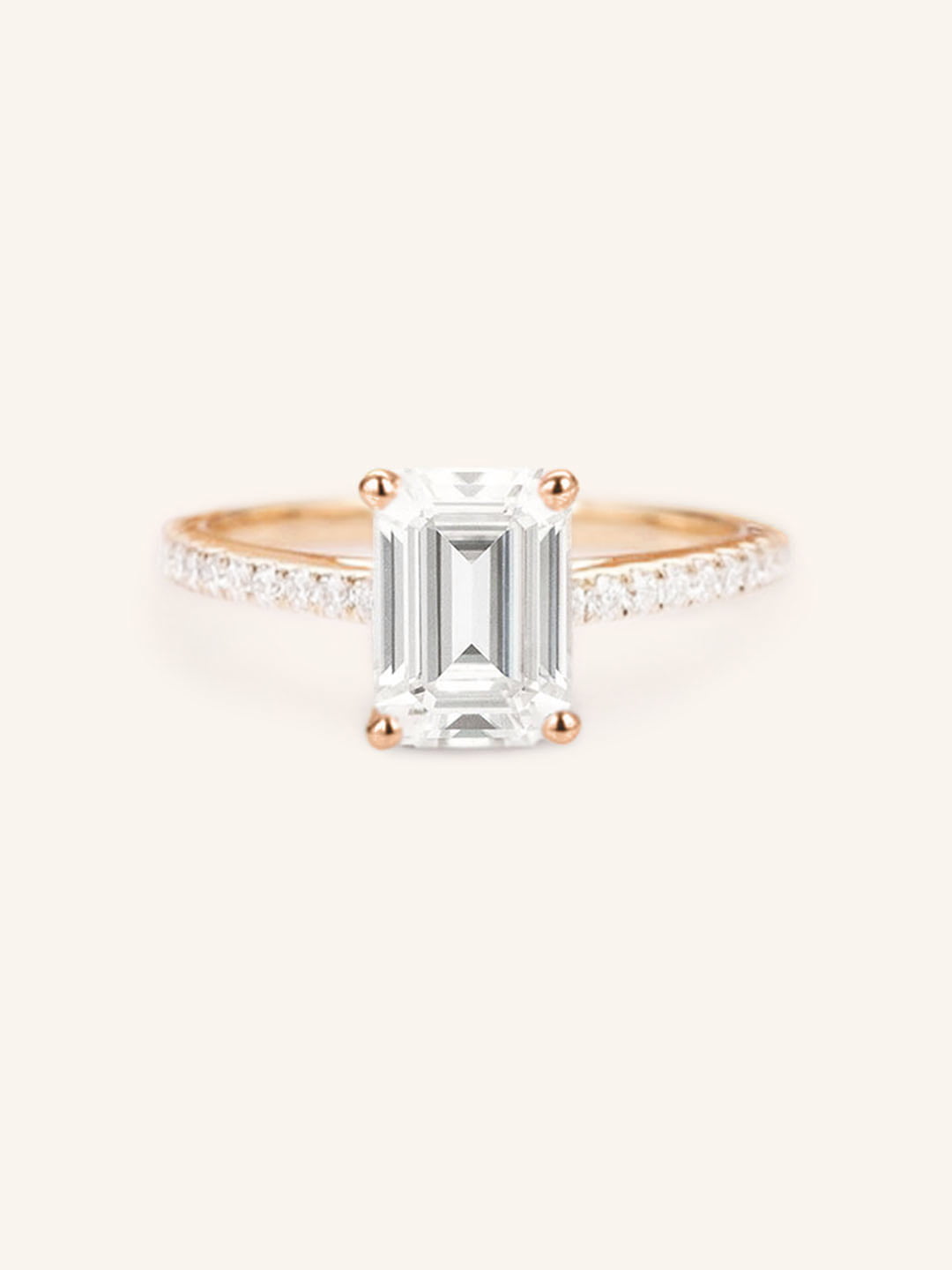 Morning Rose Emerald Cut Moissanite Diamond Engagement Ring