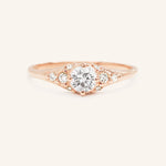 This vintage-inspired engagement ring features a stunning round lab grown diamond center, surrounded by sparkling diamond accents on the side. The intricate design showcases the beauty of the past with a modern twist, making it a perfect symbol of your everlasting love. The diamond accents add extra glamour and elegance. This ring is a timeless piece that will be cherished for generations to come.