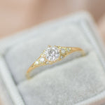 All of our engagement rings feature natural, lab-grown diamonds, and/or moissanites. They are ethically sourced and hand-selected for their quality and brilliance. Each product page specifies the stone type.