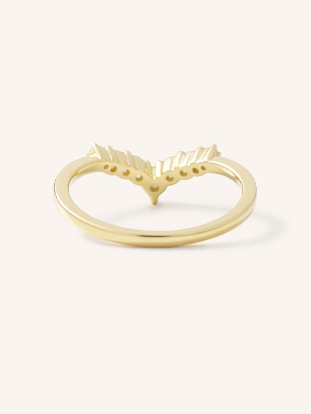 This Sundown Graduated V Diamond Wedding Ring features a stunning v-shaped design with graduated diamonds that add a touch of elegance to any wedding band collection. Expertly crafted and designed, this ring offers a unique and timeless look that will last a lifetime. Elevate your special day with this beautiful piece.