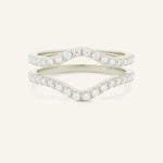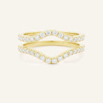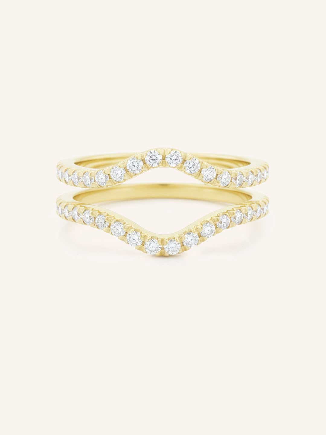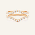 The Andera Double Band Diamond Ring Guard features two gracefully curved 14k gold bands, each adorned with sparkling diamonds that beautifully frame your engagement ring. This elegant guard is designed to enhance your solitaire with added brilliance and create a seamless, sophisticated look. Perfect for those seeking a stylish yet secure fit, the Andera ring guard adds both charm and sparkle to your cherished ring.