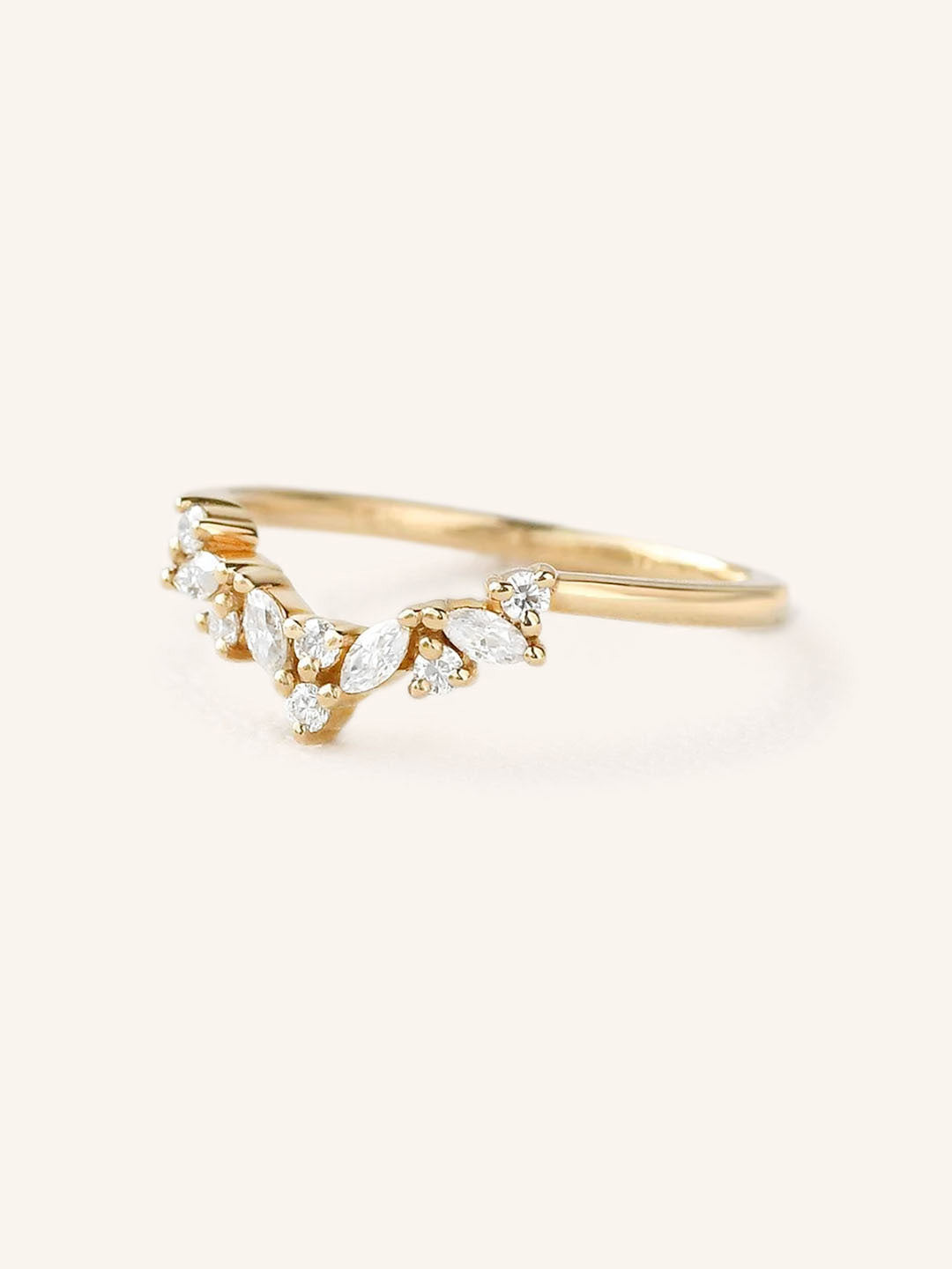 Designed to perfectly complement a marquise or pear engagement ring, this band features a unique curved shape that tapers to a point, creating a stunning and elegant look. Whether you're looking to make a statement or add a touch of elegance to your engagement ring, this band is sure to make heads turn.