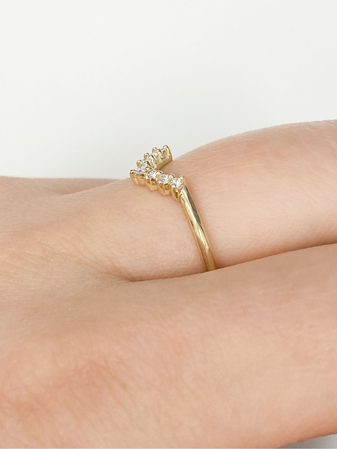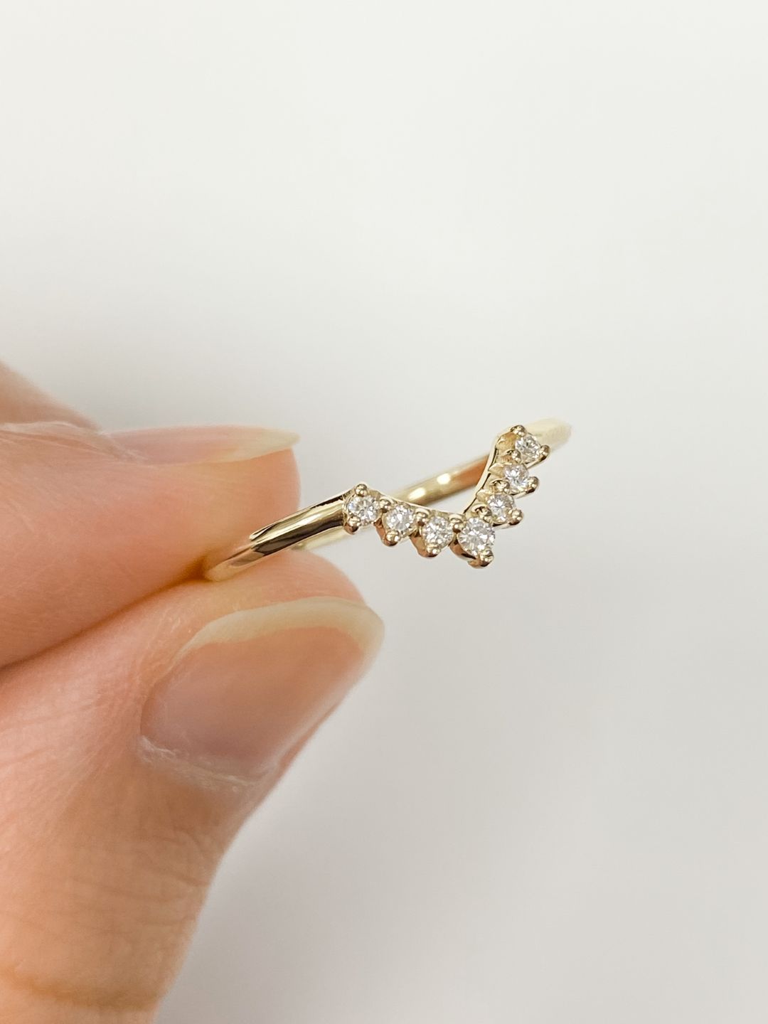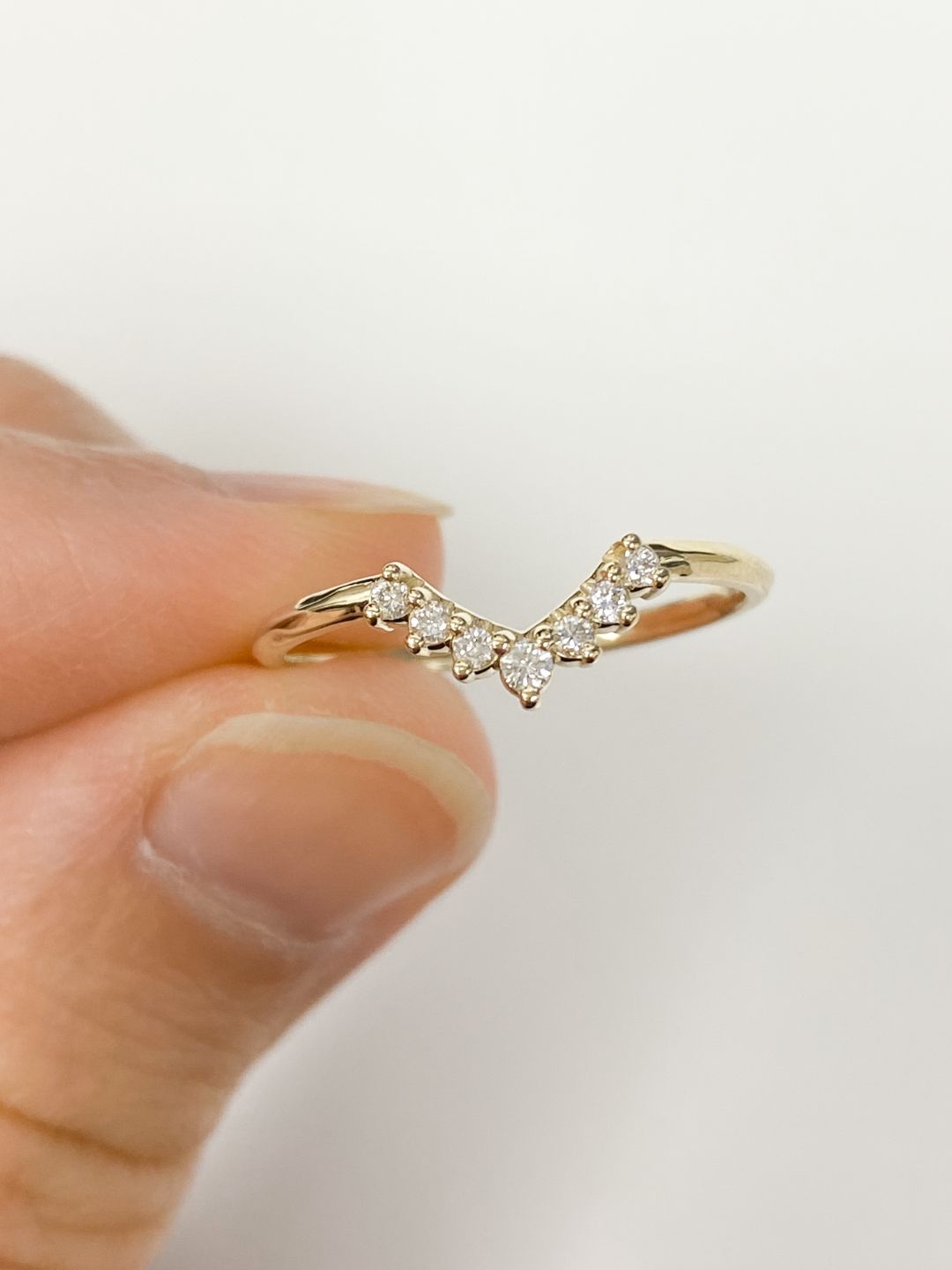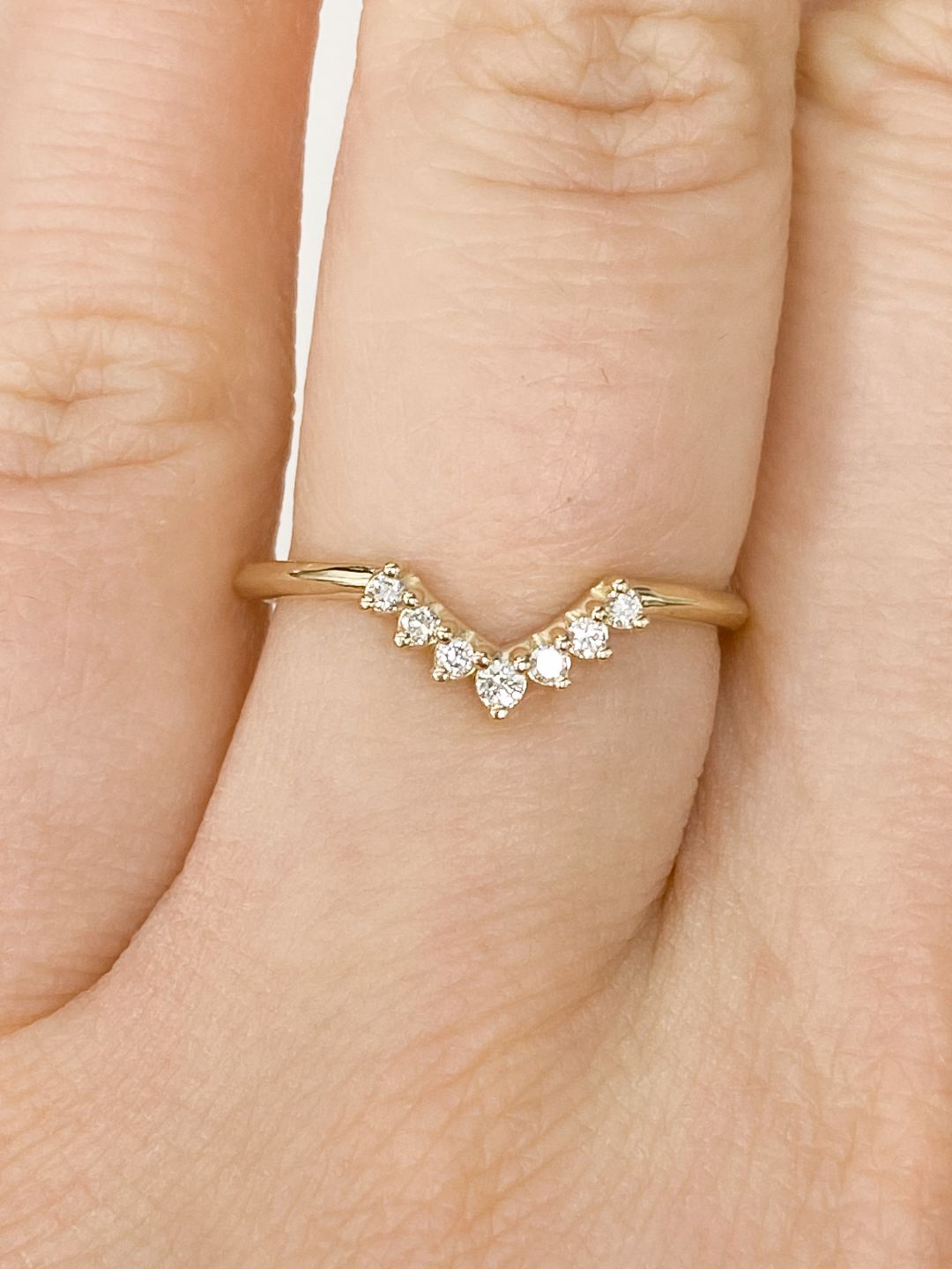 Our V curve diamond wedding band is a stunning and affordable option for the modern bride. Featuring sparkling diamonds and a unique V-shaped curve, this ring is both elegant and practical, making it the perfect choice for a lifetime of love and commitment.