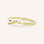 The Misty Curved Diamond Wedding Band features a delicate curve resembling a sparkling constellation, with diamonds artfully arranged to evoke celestial beauty. This unique design adds a touch of brilliance and whimsy, making it the perfect accent to your engagement ring or a dazzling standalone piece.