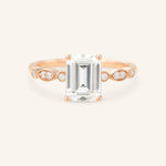 Featuring an emerald step cut lab-grown diamond, available in 7x5mm, 8x6mm, or 9x7mm size. *Sizes are approximate and measurements are subject to change/alter to fit. The center stone will come graded with a certified report.
