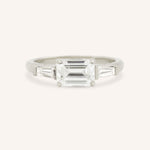 Three Stone Emerald Cut Diamond East-West Engagement Ring