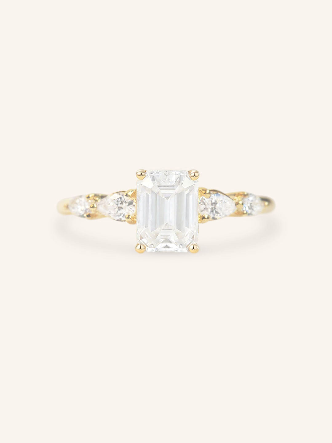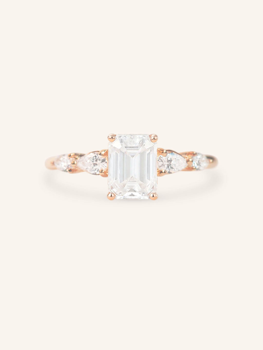 The Bella Emerald Cut Diamond Engagement Ring showcases a stunning emerald cut diamond at its center, elegantly set in 14k gold. Its sleek and elongated shape creates a captivating, vintage-inspired look, perfect for brides seeking a ring with timeless elegance and modern sophistication. This ring’s unique silhouette enhances the diamond’s brilliance, making it a breathtaking symbol of your everlasting love.