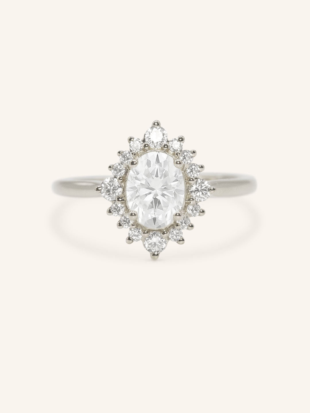 Elisa Oval Diamond Halo Cluster Engagement Ring