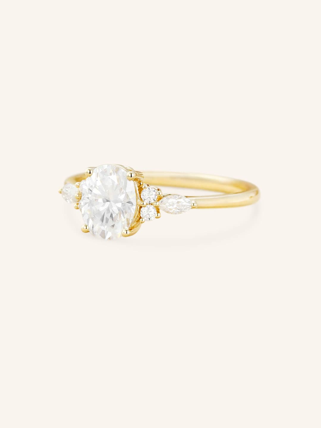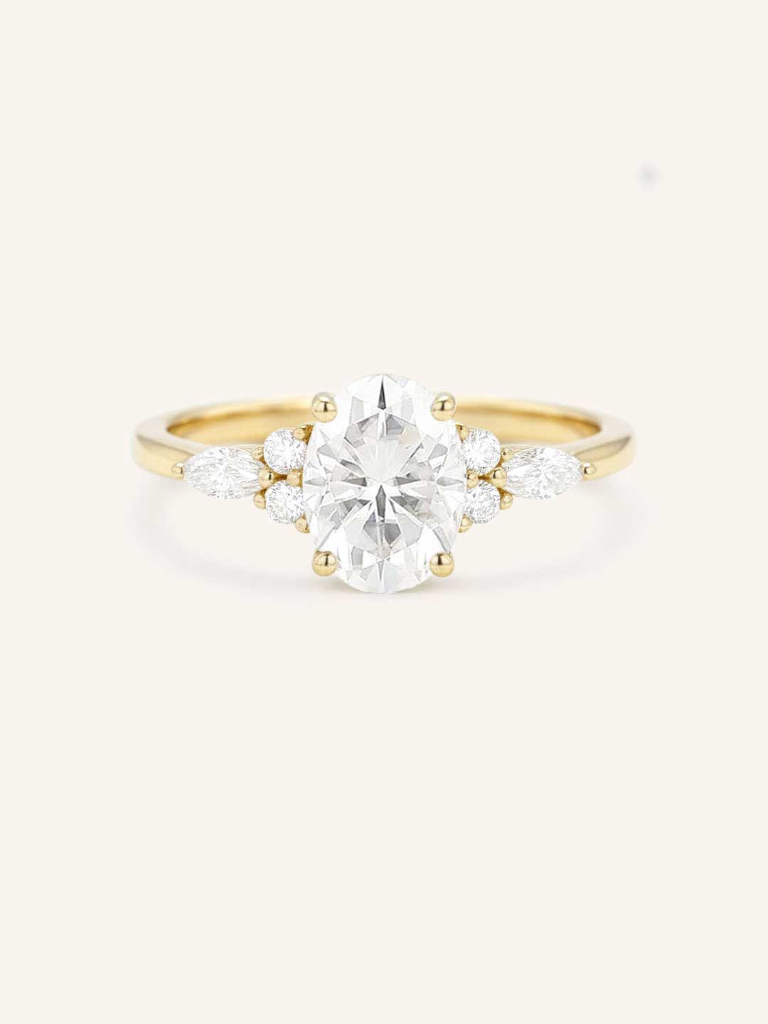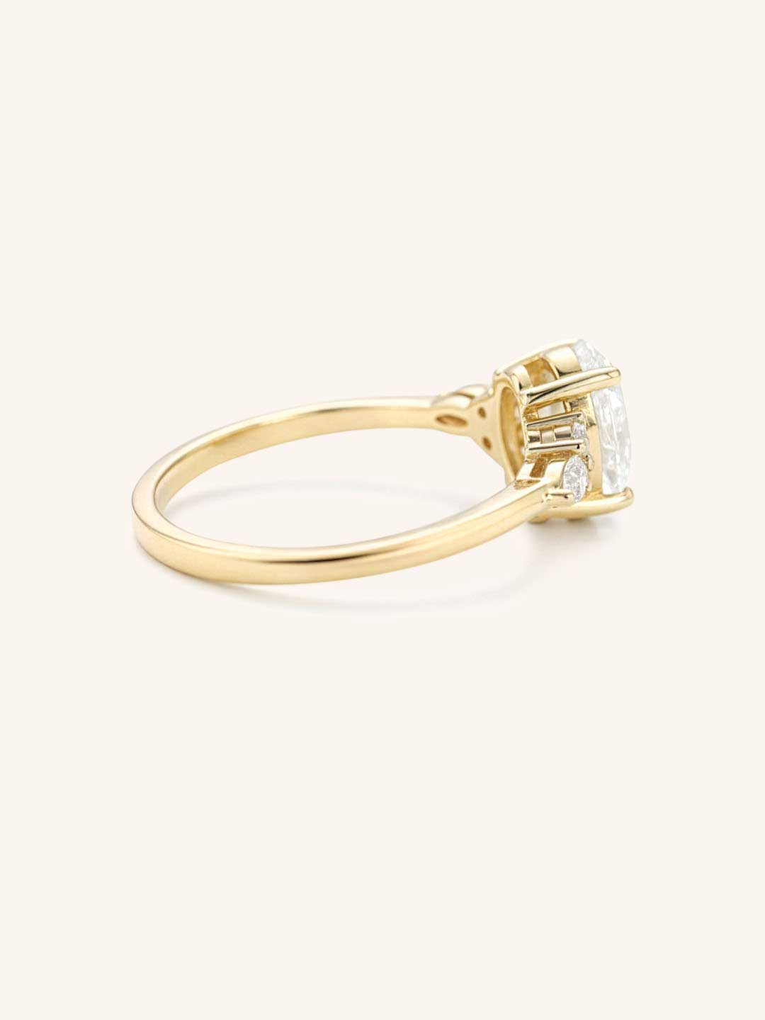 Featuring a oval cut lab-grown diamond, available in 8x6mm, 9x7mm, or 10x8mm sizes. *Sizes are approximate and measurements are subject to change/alter to fit. The center stone will come with a certified report.