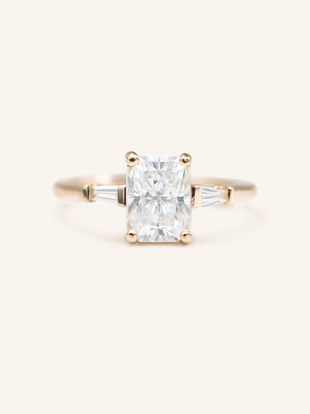 Stately Manor Radiant Cut Moissanite Tapered Baguette Three Stone Engagement Ring