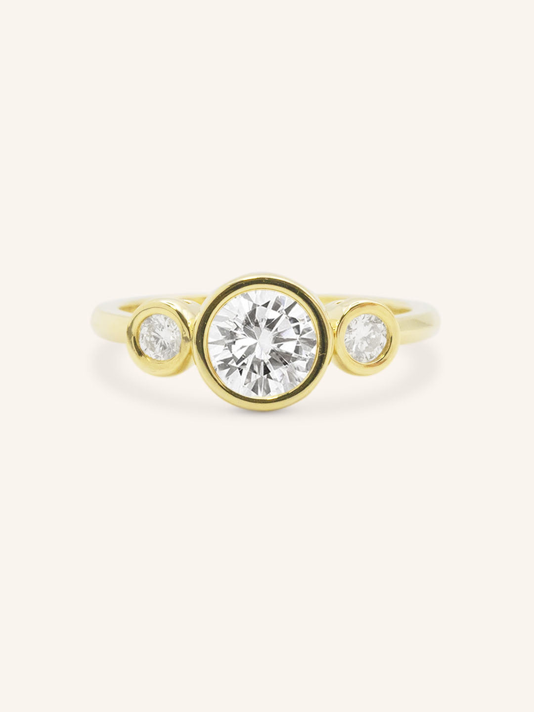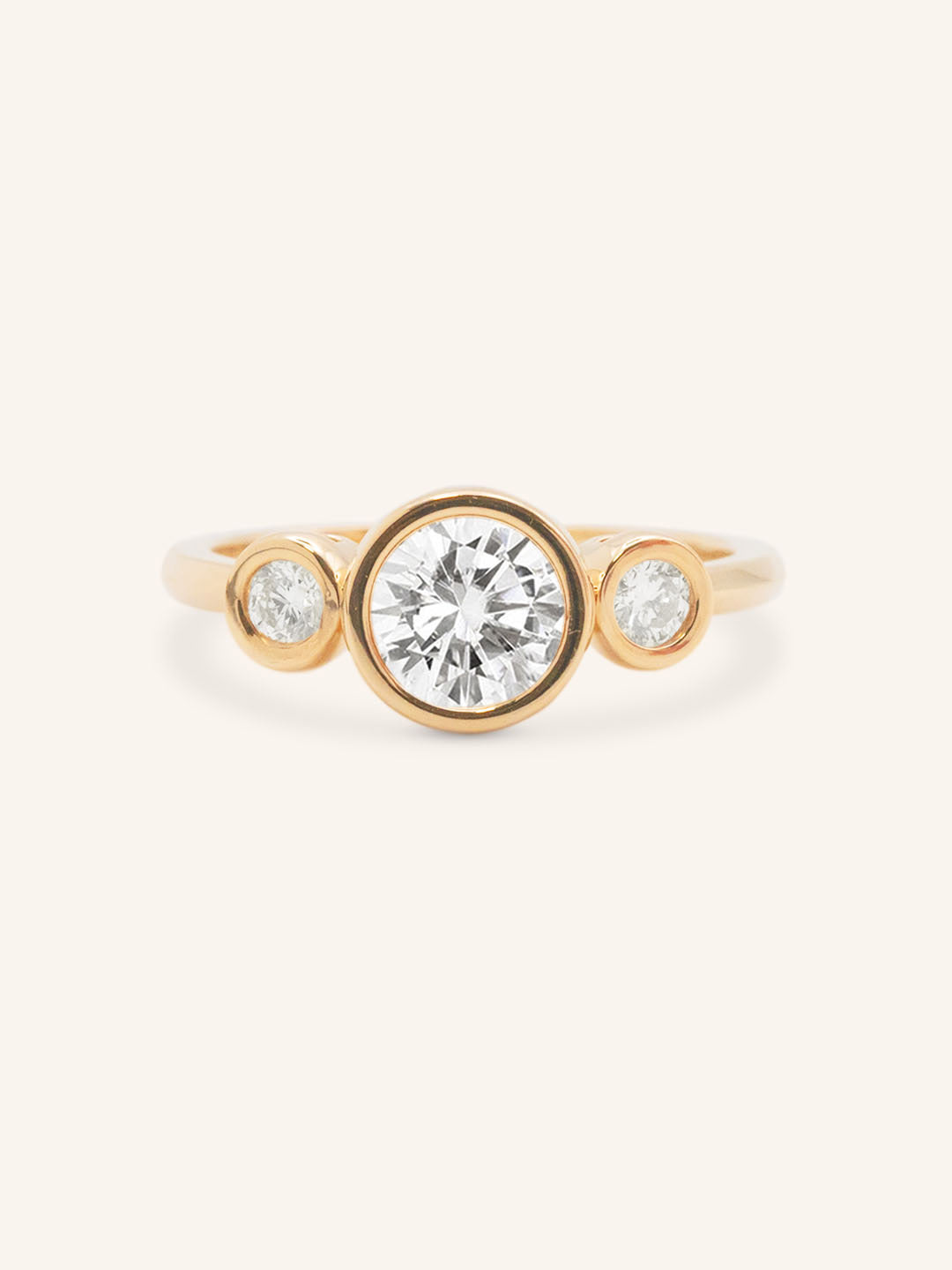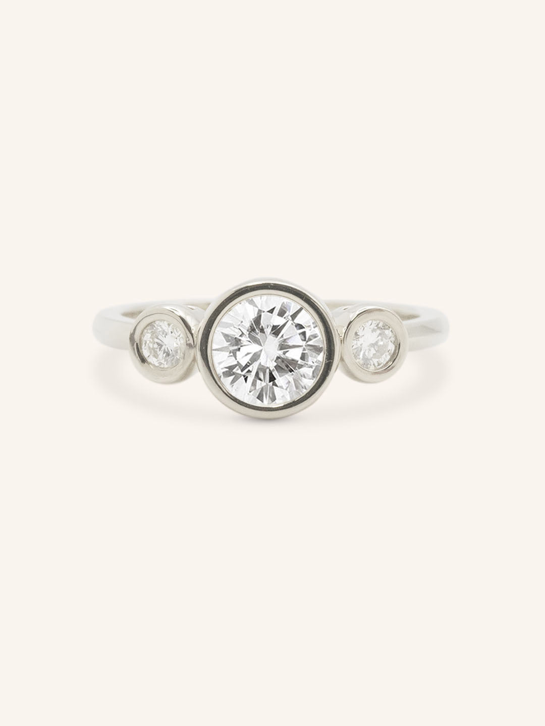 Tamara Round Three Stone Diamond Bezel Engagement Ring