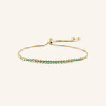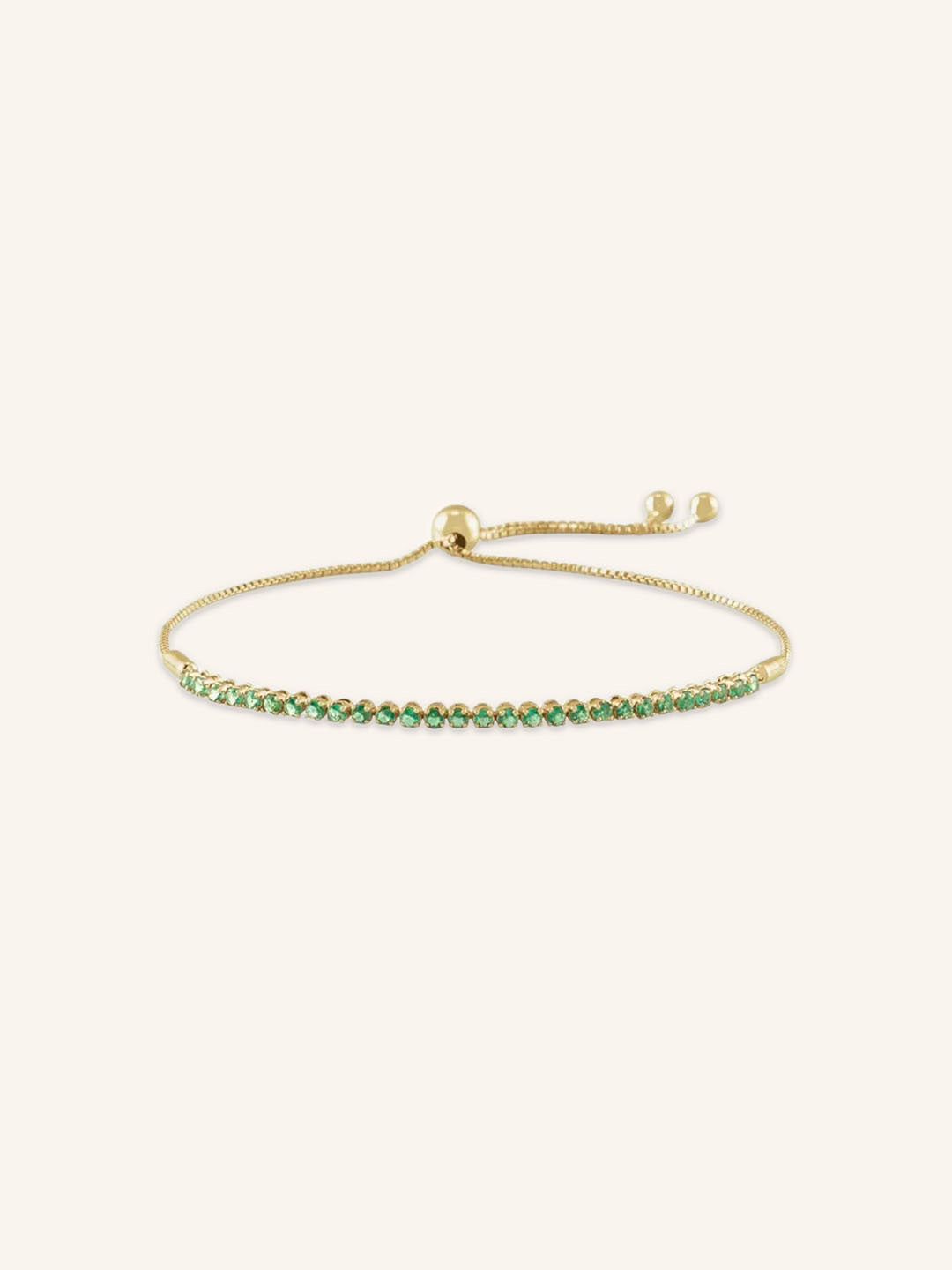 Introducing the Raina Emerald Bracelet - a beautiful and unique piece of jewelry that will add a touch of elegance and sophistication to any outfit. Crafted with the finest emerald stones, this bracelet is the perfect way to show off your unique style and make a statement. The emeralds are carefully hand-selected to ensure they sparkle with a deep royal green hue, giving the piece an extra touch of luxury. The delicate chain completes the look, making it perfect for any occasion. Adjustable to be worn as a bracelet or anklet.