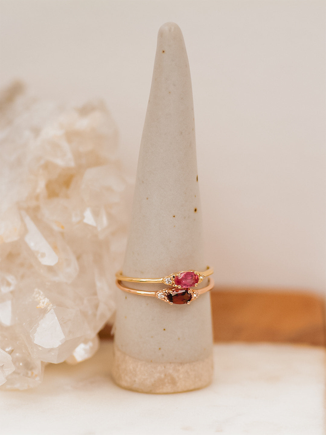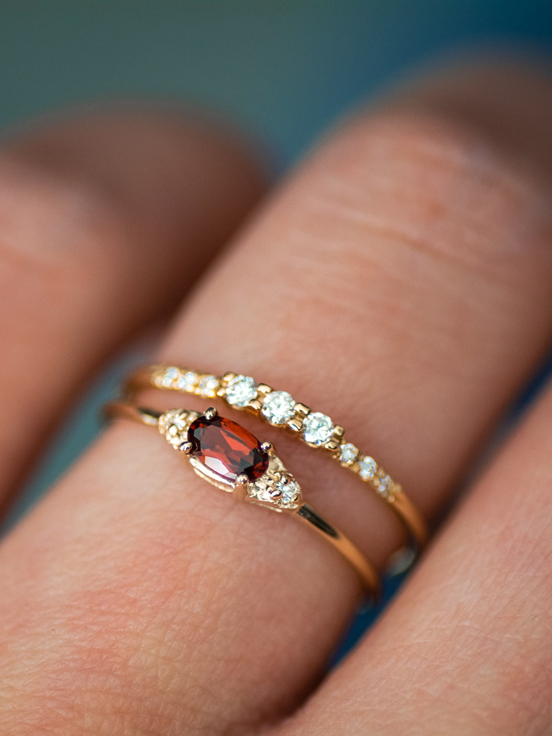 We designed the Celestia to be the perfect blend of sweet and minimal - matching the gemstones to the colors of fall with some rich oranges, reds, greens and more. Time to celebrate yourself or the one you love with this beautiful fall minimal ring.