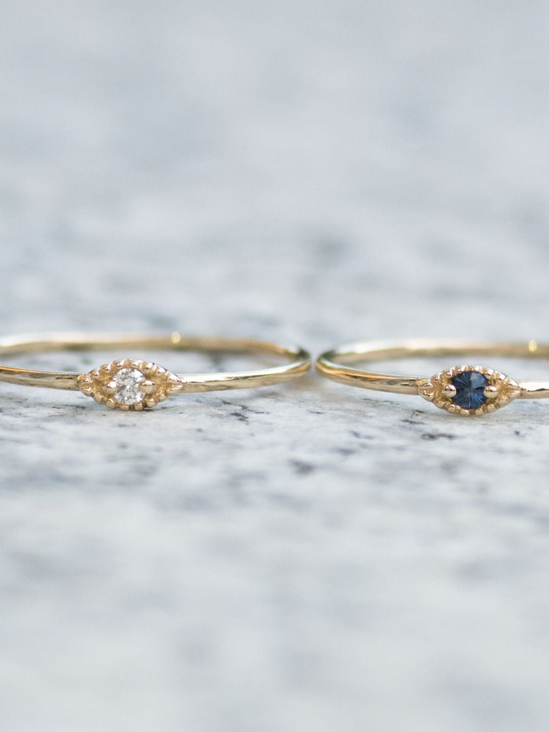The evil eye is the symbol to ward off the evil intentions with a look, our Evil Eye Blue Sapphire Ring was created to ward off negative energy. A powerful petite symbol that can be worn as a reminder you are protected.