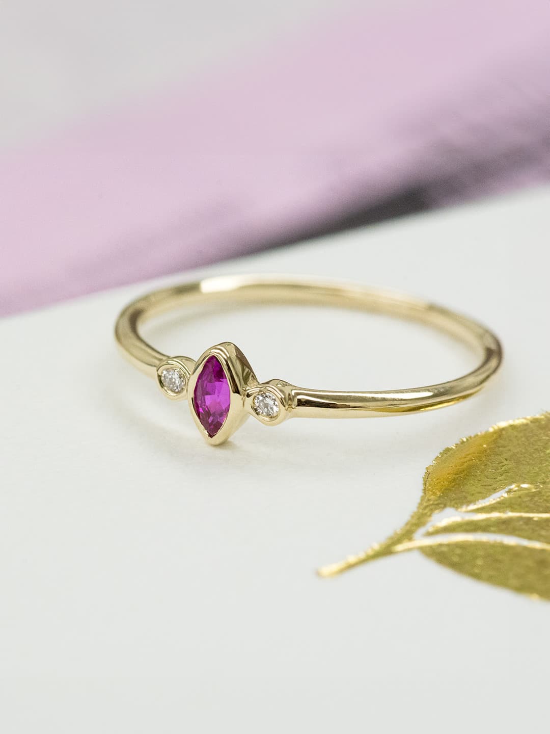 A transition of life. The season of fall is perfectly encapsulated in this marquise diamond ring. With your choice of gemstone, this dainty and minimalist ring is stunning to wear every day - alone or stacked with your other pieces.