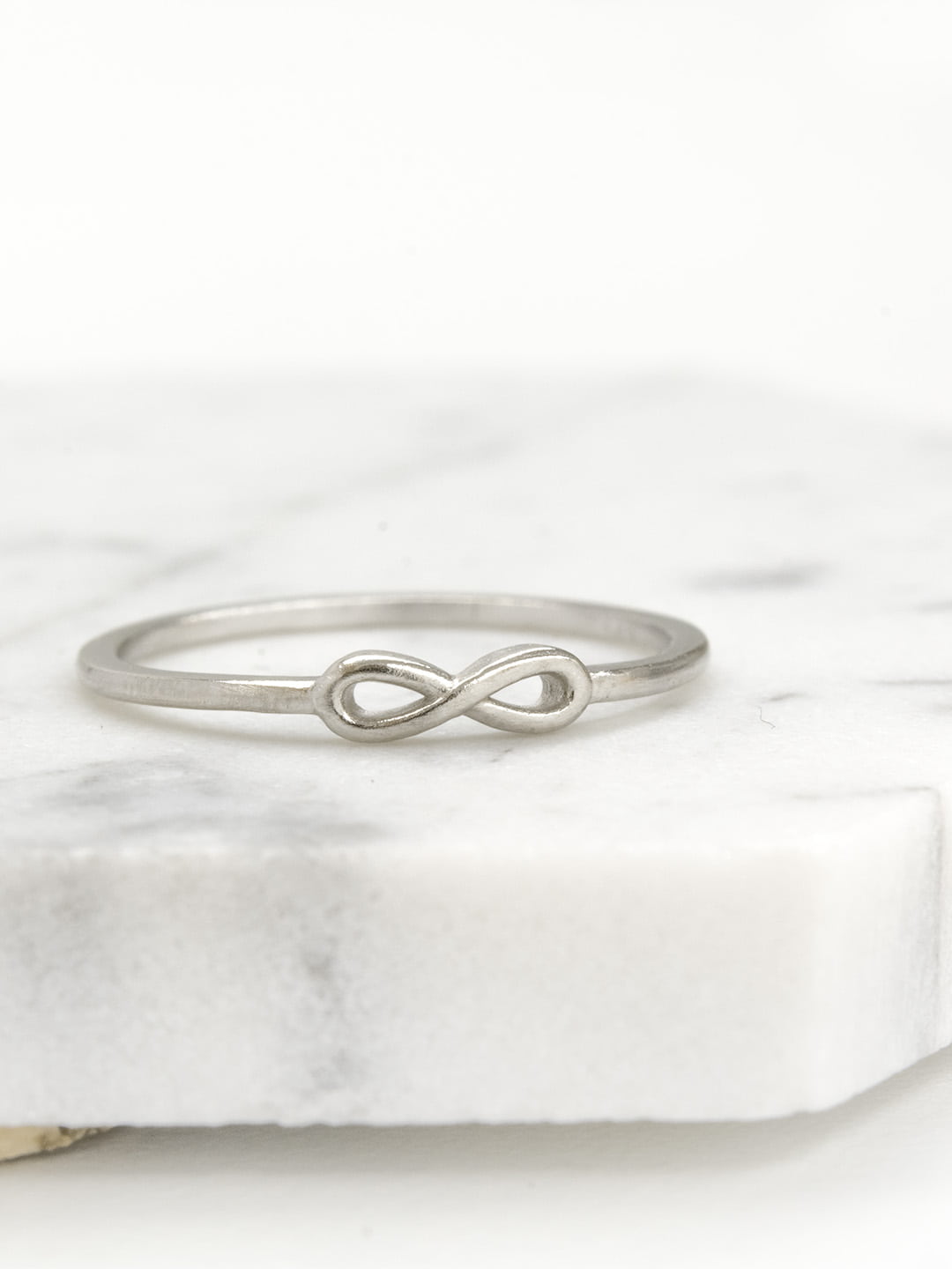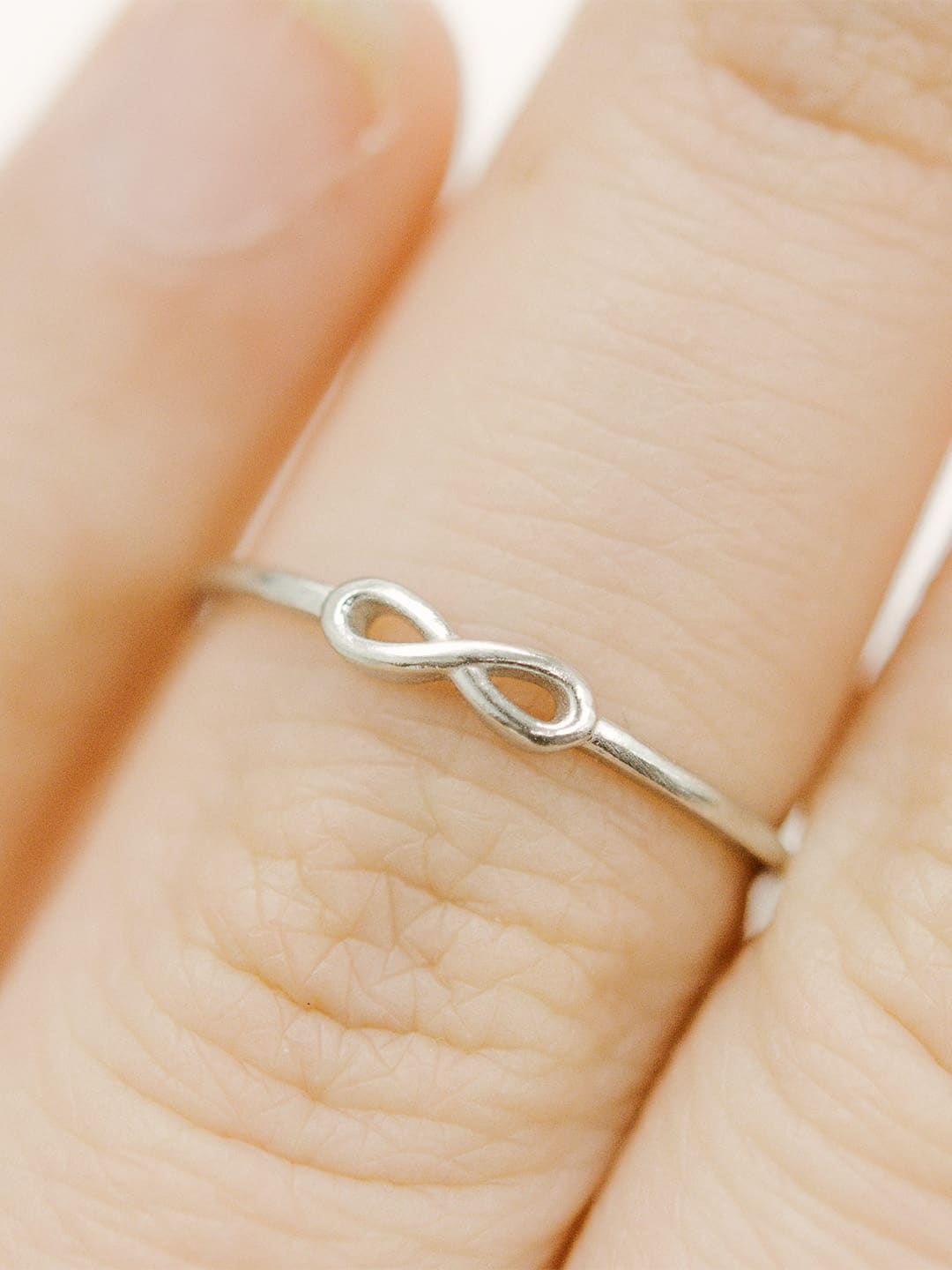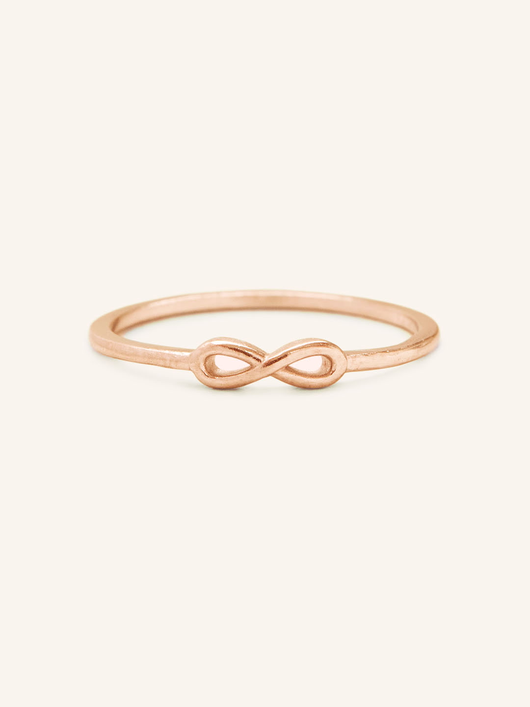 Petite and minimal, a beautiful infinity love ring that can be stacked with your favorite rings.
