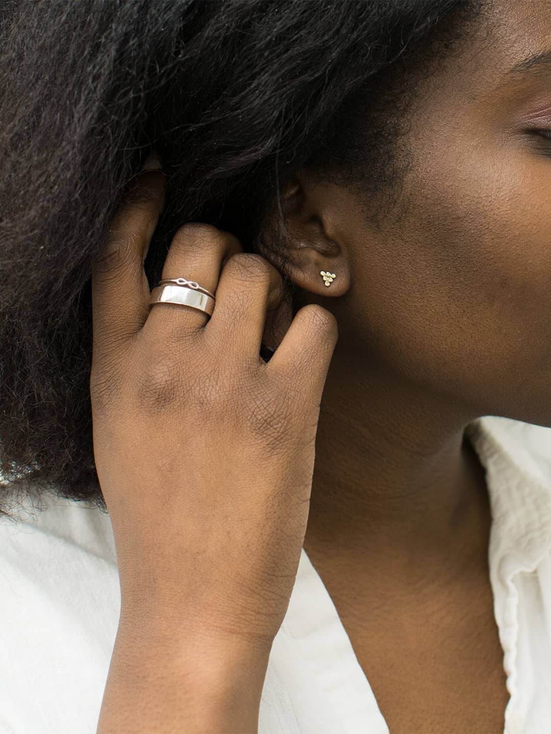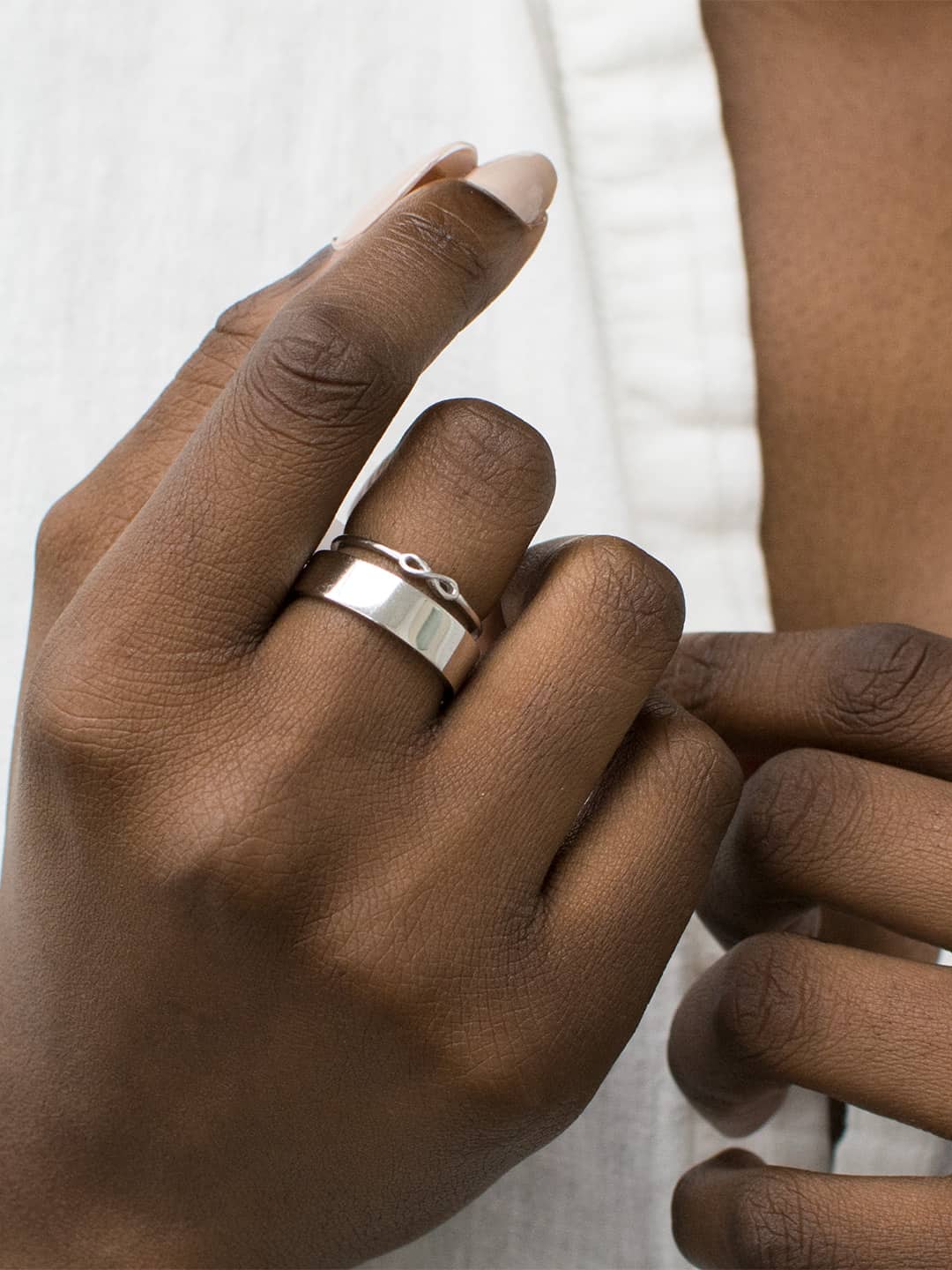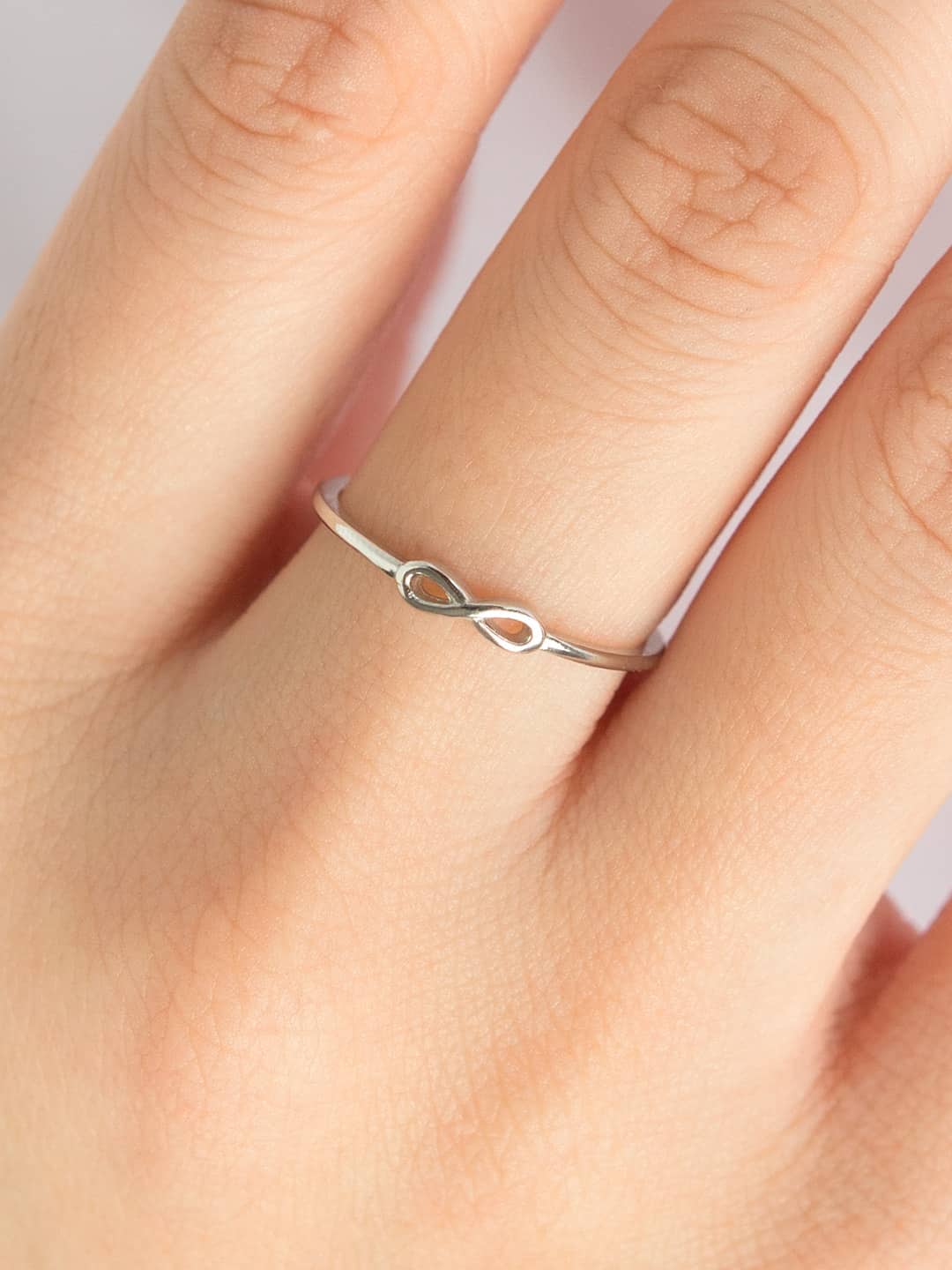 Petite and minimal, a beautiful infinity love ring that can be stacked with your favorite rings.