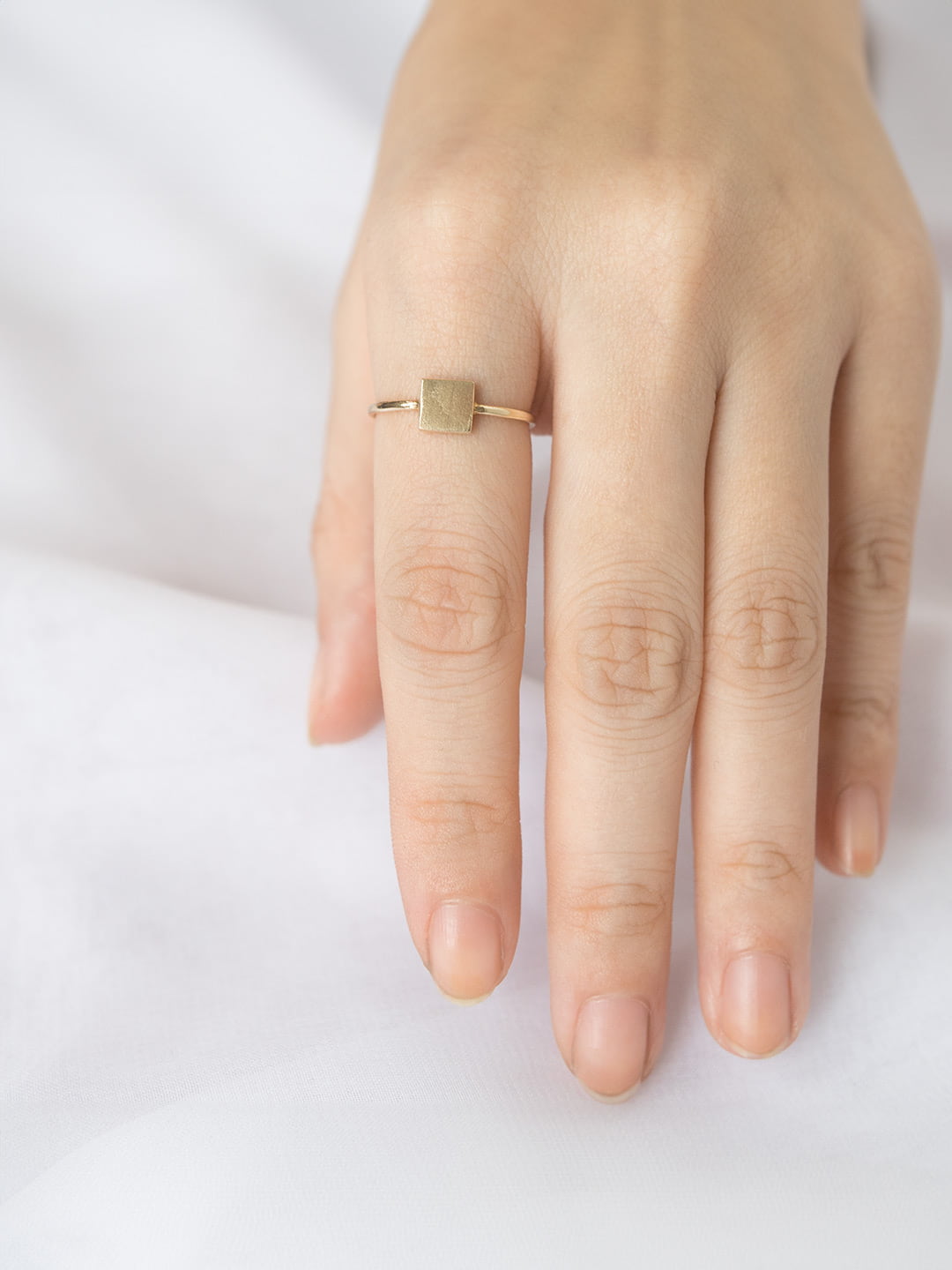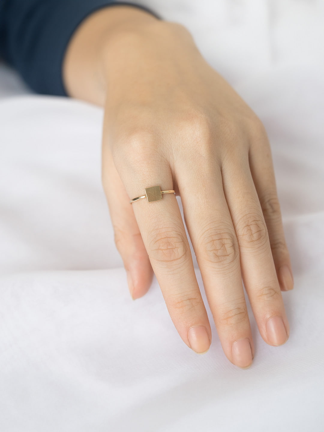 A timeless jewelry essential, our gold square ring adds an elegant touch to any occasion. Expertly crafted in a square shape, this engravable ring makes a perfect personalized gift.